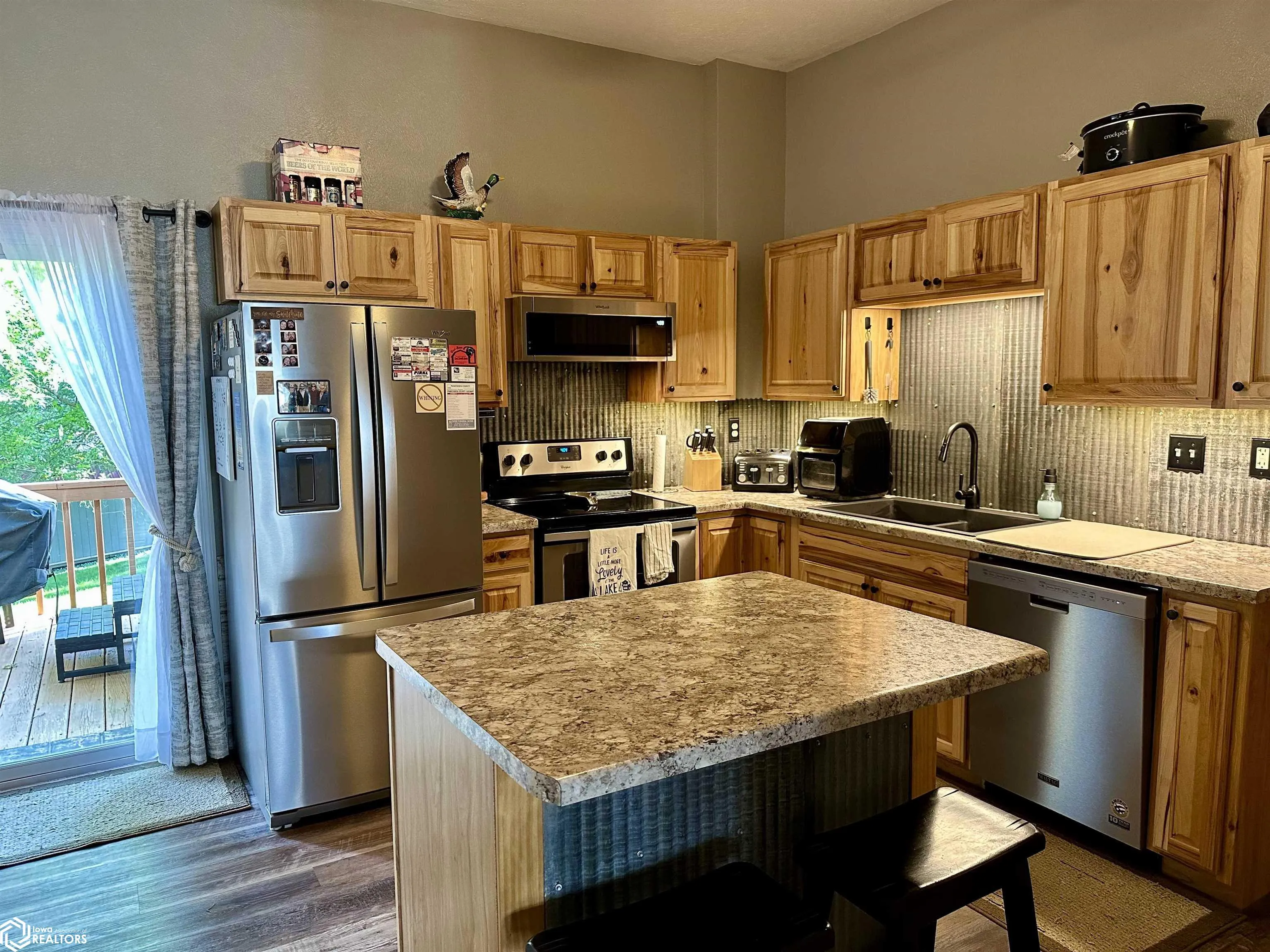 Start living your lake life today! Whether you’re looking for a full-time residence or the perfect weekend retreat, this property offers the ideal blend of comfort and charm. A welcoming front porch and cozy fire pit area set the tone the moment you arrive, giving the home an instant relaxed feel. Step inside to a spacious living room designed for entertaining, featuring soaring 10-foot ceilings that flow throughout the home. Down the hall, you’ll find two well-appointed bedrooms situated conveniently side by side. The kitchen is a standout, complete with matching appliances, a rustic tin backsplash, and a stylish island that opens to the dining area—ideal for gathering with friends and family. Just beyond, you’ll find the full bathroom and laundry room, highlighted by a stunning copper sink. Enjoy views from the dining room that lead out to the back deck, perfect for summer grilling or unwinding in the hot tub any time of year. The one-car garage and lean-to, paired with a spacious driveway, make guest parking effortless. The garage also features a built-in bar, creating the perfect space for entertaining or relaxing after a day on the lake.