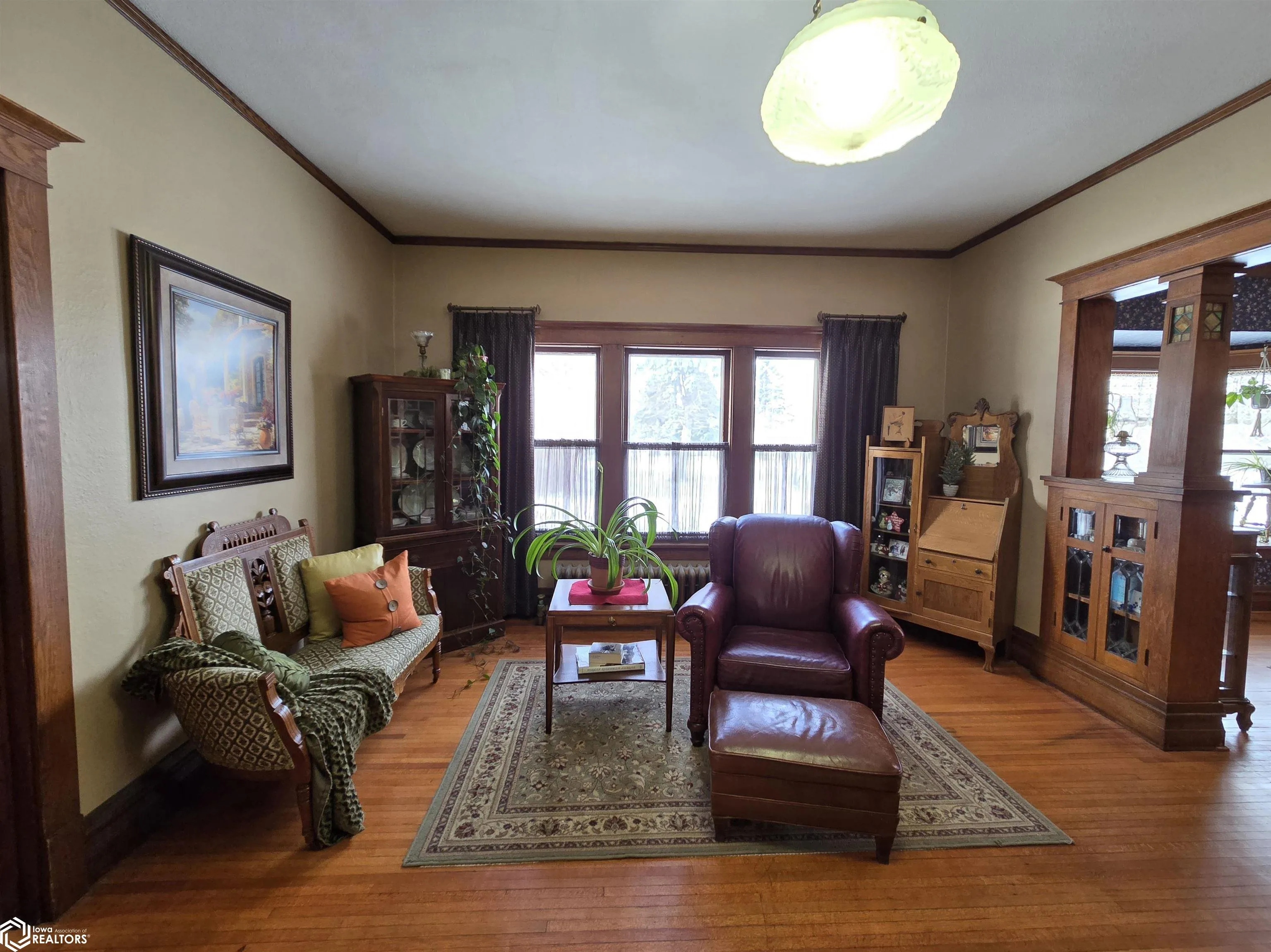 Step into timeless elegance in this exceptionally charming six-bedroom home, rich with exquisite original woodwork, gleaming restored hardwood floors, and classic built-ins throughout. A grand foyer welcomes you with a stunning staircase and beautiful hardwood flooring leading into the spacious living room. Beyond the living room, the piano room offers generous space for seating and entertaining. The formal dining room features beautiful windows and striking built-in china cabinets, perfect for hosting memorable gatherings. Just off the dining room is an elegant full bath with a clawfoot tub and tiled floor. The inviting kitchen seamlessly blends charm and functionality, offering an island with seating, an eat-in area, and generous pantry-style cabinetry. The kitchen opens to a cozy sitting area highlighted by a new gas fireplace. Upstairs, you’ll love the abundance of space with six bedrooms, a large full bathroom, and a convenient laundry room. The three-car garage provides ample storage and includes its own walk-up attic. Set on approximately one acre, the property also features a beautifully updated barn. Other highlights include new roof, new sewer and new boiler! Call today for a private tour!