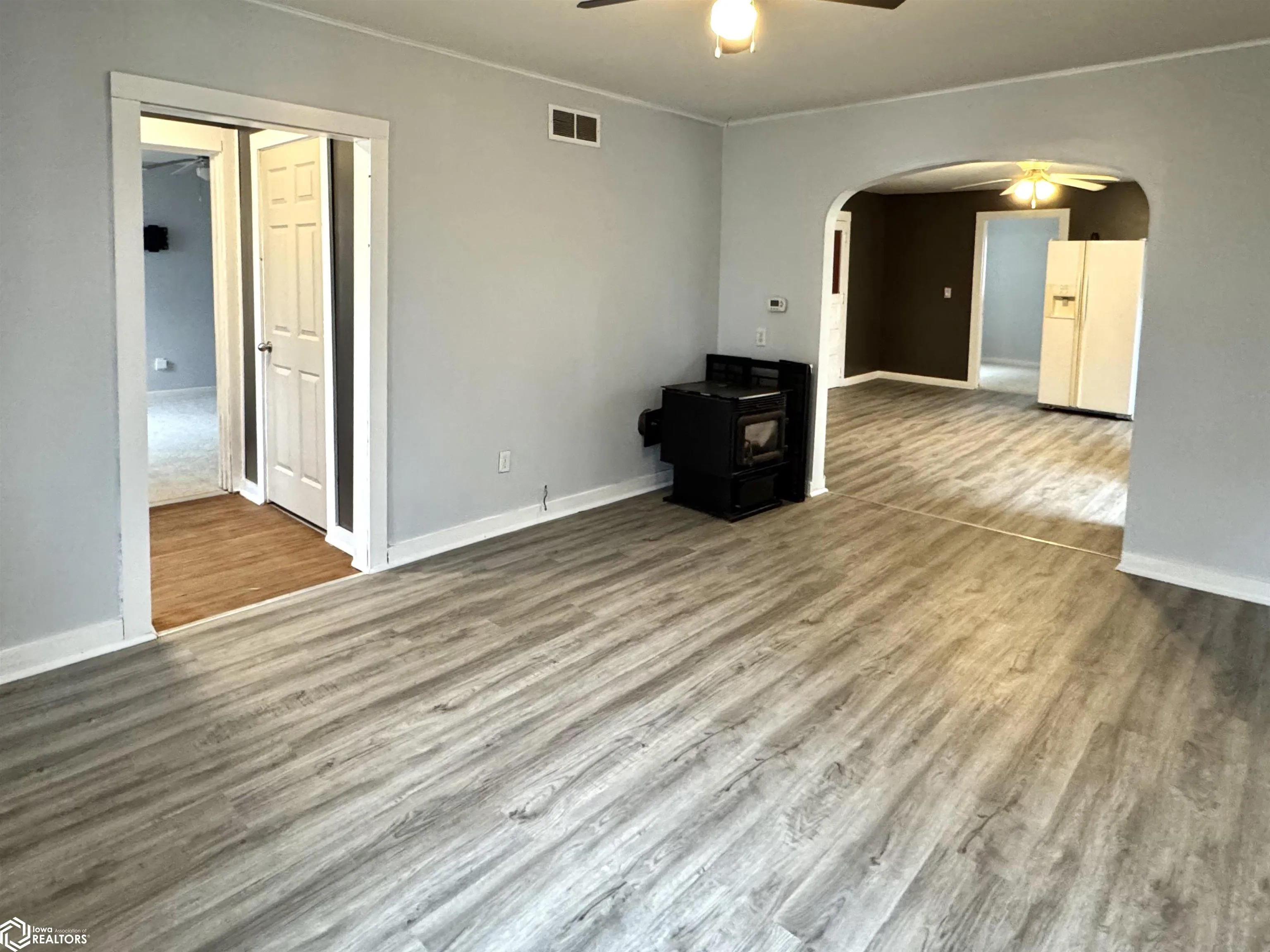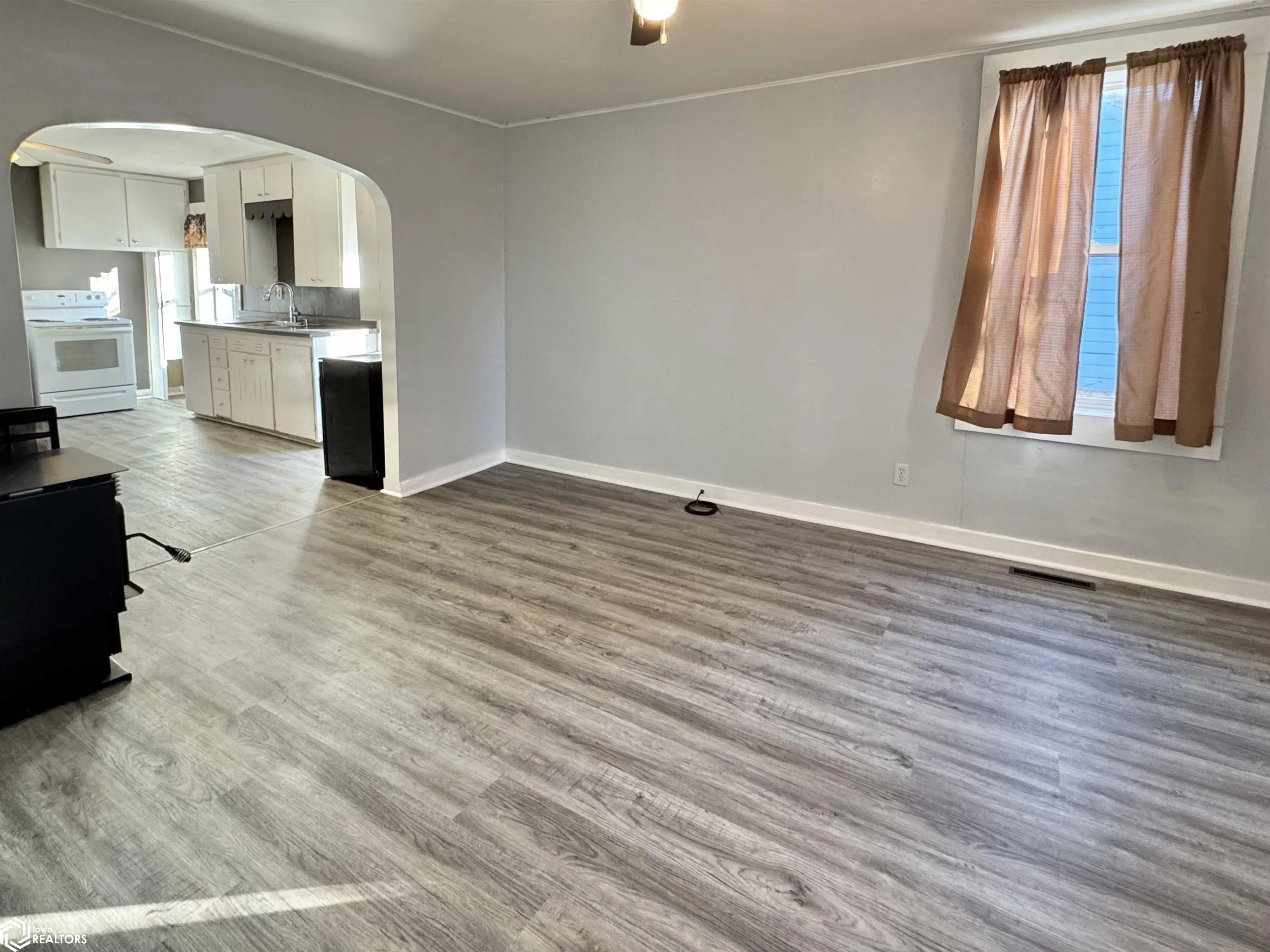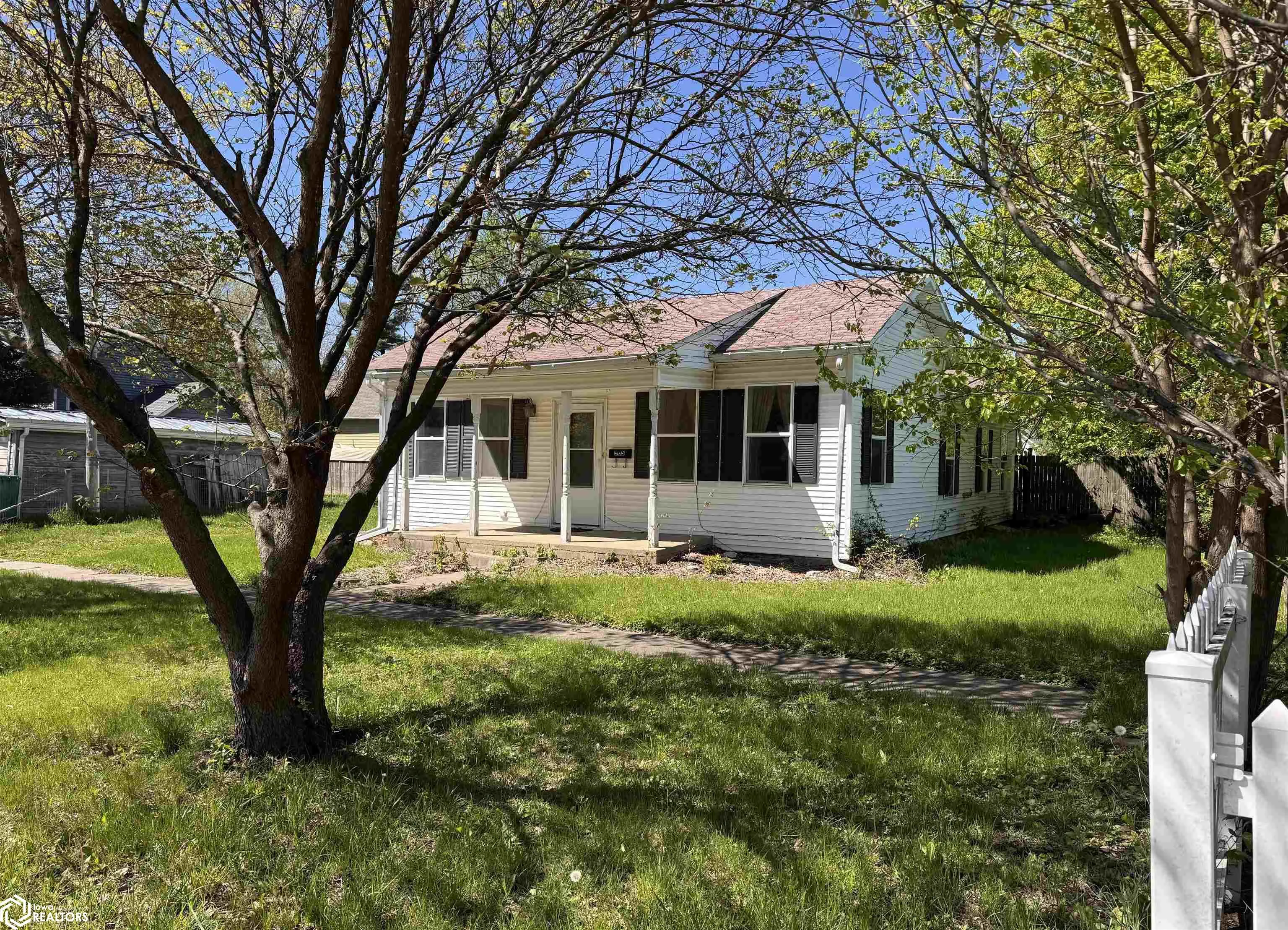 Affordable living on a quiet street just a few blocks from the square! Many updates including new flooring, paint, newer windows and doors, some newer plumbing, kitchen and bath updates, etc.. Two bedrooms (including a non-conforming one), and one full bath with washer/dryer. This home comes with a large back yard with privacy fence, a covered brick patio area, and a one-car detached garage. Great starter home or investment property!