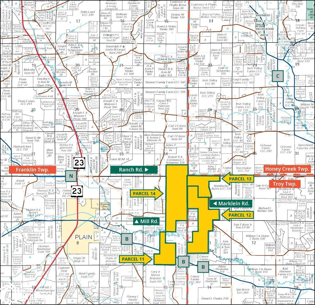 3,872.12 acres, m/l, located near Sauk City and Plain, Wisconsin. Property has an estimated 2,175.44 FSA/Eff. crop acres with a NCCPI of 61.80. This multi-farm property includes several residential dwellings, multiple parlors, free-stall barns, machine sheds, cattle sheds, barns, and feed storage facilities spread across several farm sites. This is a turn-key dairy operation with quality crop land and recreational opportunities spread among several farm sites. Contact agent for more specific details on the farm-site locations.