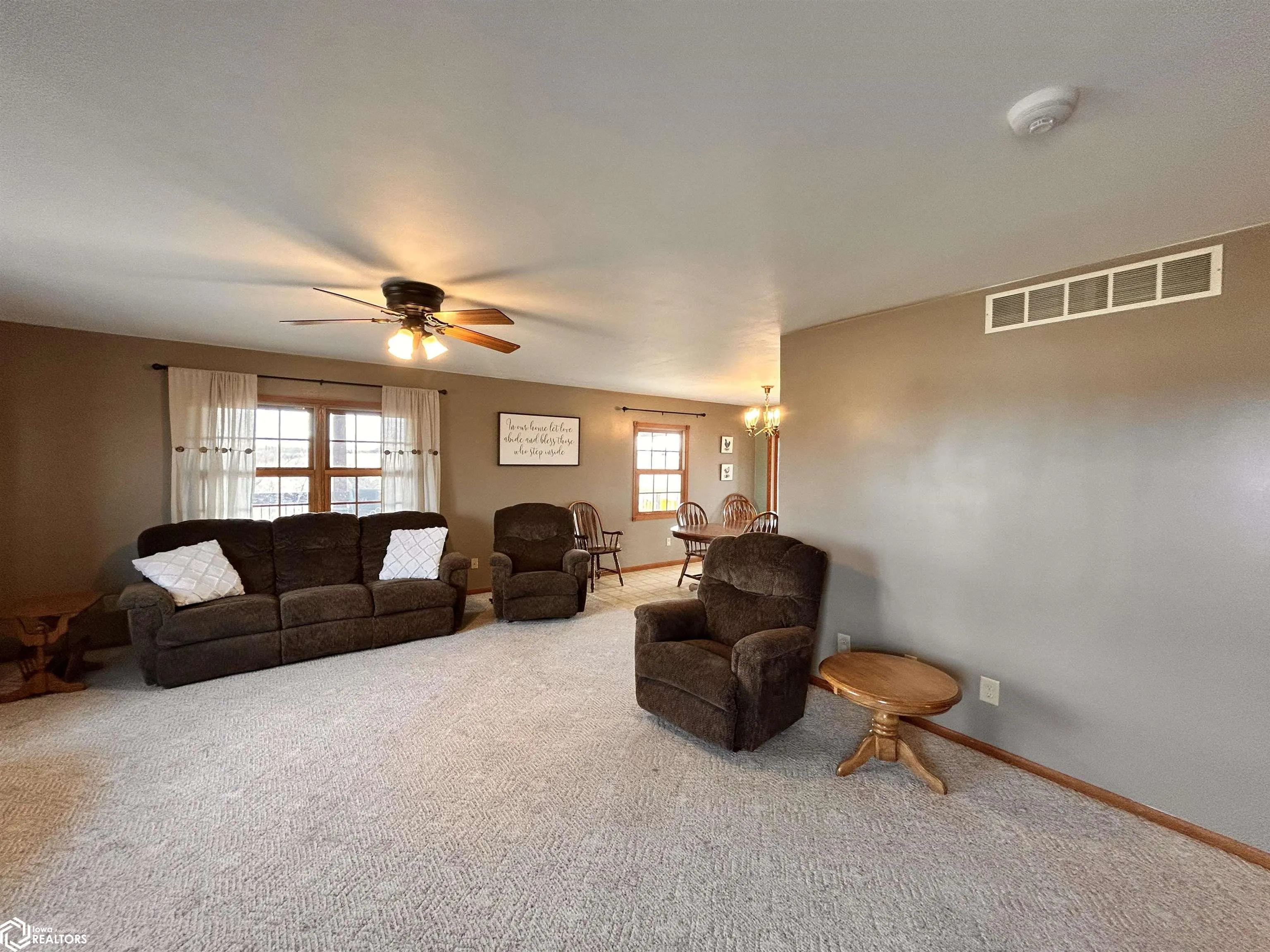 Discover the perfect combination of productivity and rural living with this ranch-style home situated on 40A in northern Davis County. This home features a large informal dining room and kitchen, which comes complete with all appliances and is ready to serve your family. There are 2 bedrooms and a full bathroom on the main level, along with a laundry room that has a large closet that could be a walk-in pantry. The walkout basement has a large family room, the 3rd bedroom, another full bathroom, a large storage room, as well as a 4th non-conforming bedroom. Enjoy the three-season porch or stunning views from the large deck just off of the dining area. Outside you will find a homesteader’s dream. The oversized two car garage includes a hanging furnace and is partially insulated to keep you comfortable working on winter projects. The chicken coop and loafing shed are both included and sit on concrete slabs. Another outbuilding that could be used as tack storage or a playhouse for kids, as well as an outdoor storage shed are also included. There are 23.35 certified crop acres have been in both corn and soybeans, having been alfalfa prior to that. Another 12 acres could be utilized as pasture or hay ground as well, with some fence already in place. Two ponds sit on this property, one of which has a hydrant for livestock, as well as a dock for recreational use. With an average CSR2 of 48.8, this would make a great farm for anyone wanting to get started.