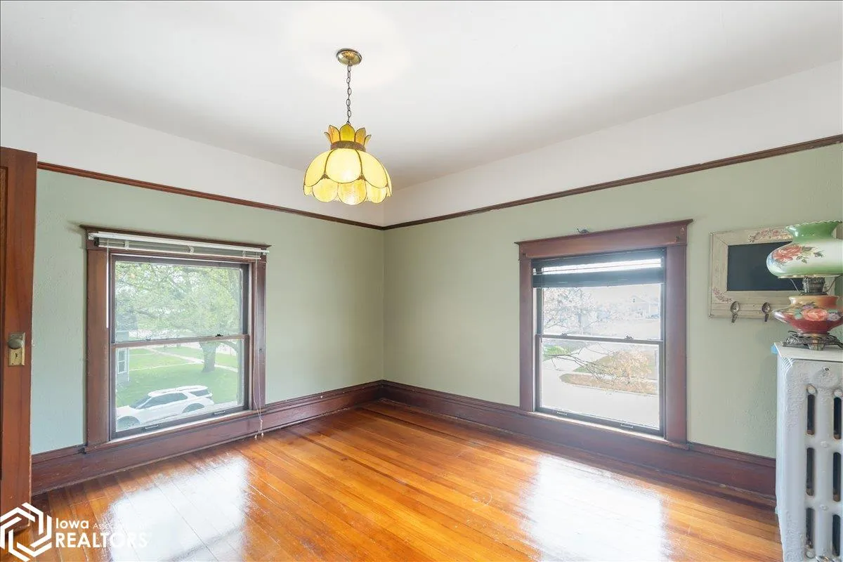 Step into this charming 2-story home filled with original woodwork and character throughout. The exterior has seen a major upgrade with a brand new roof on both the home and porch, including new plywood, restructured support, and fresh shingles for peace of mind for years to come. Inside, you’ll appreciate the classic layout featuring a formal dining room, a cozy sitting room, and a large living room that offers plenty of space for everyday living and entertaining. Upstairs, you’ll find four comfortable bedrooms and a full bathroom, providing room for everyone. Outside, enjoy relaxing on the inviting wraparound porch that overlooks the spacious yard. A 2-stall garage adds great storage and parking convenience. This property blends timeless character with significant updates, ready for its next owner to make it home.
