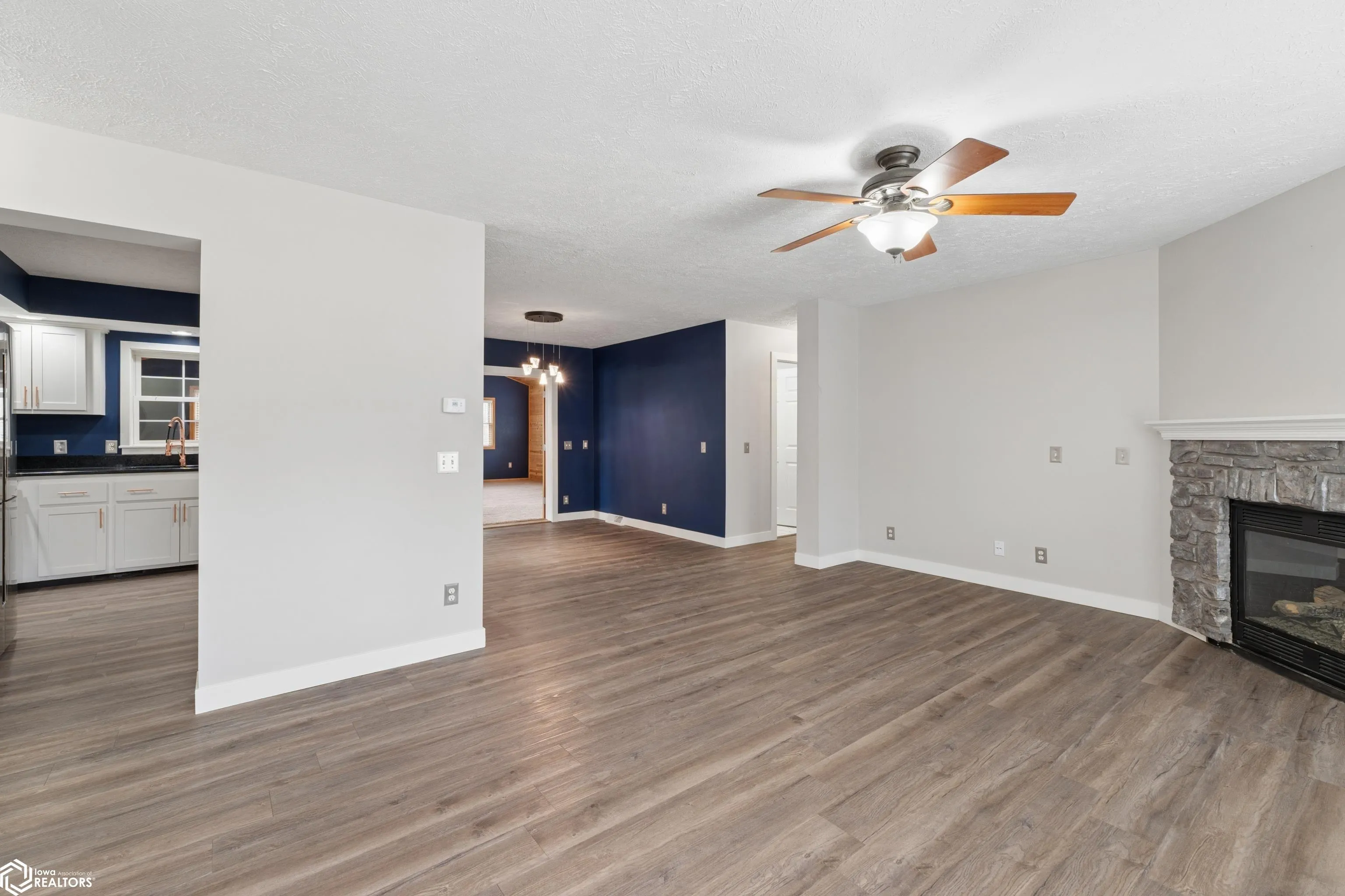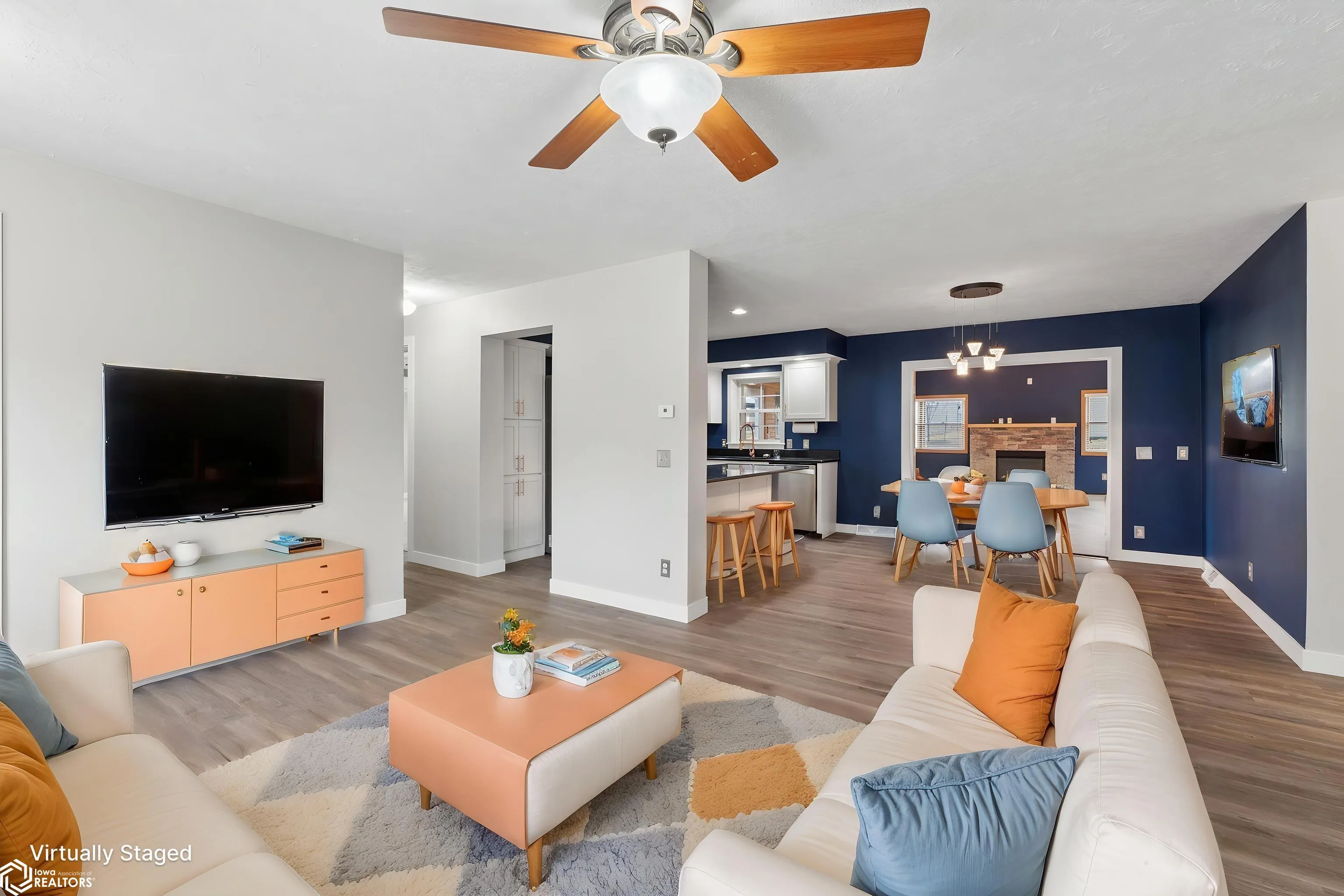 Beautiful 4-bedroom, 3-bath home located in the highly desirable Ventura Heights neighborhood. Freshly painted throughout. The main-floor primary bedroom features a walk-in closet, a full bathroom with a separate deep bathtub, and direct access to a sun room with a hot tub. The main level also includes two additional bedrooms, a kitchen with Cambria countertops and an island, a dining room, a full bath, living room with a fireplace. The spacious family room features vaulted ceilings and an additional fireplace, creating a warm and inviting space for relaxing or entertaining. The lower level offers a nice family room with a wet bar, an additional bedroom, a full bath, and an office. The home also includes a three-stall garage, with two stalls that are insulated and heated, plus a sink with running water for added convenience.