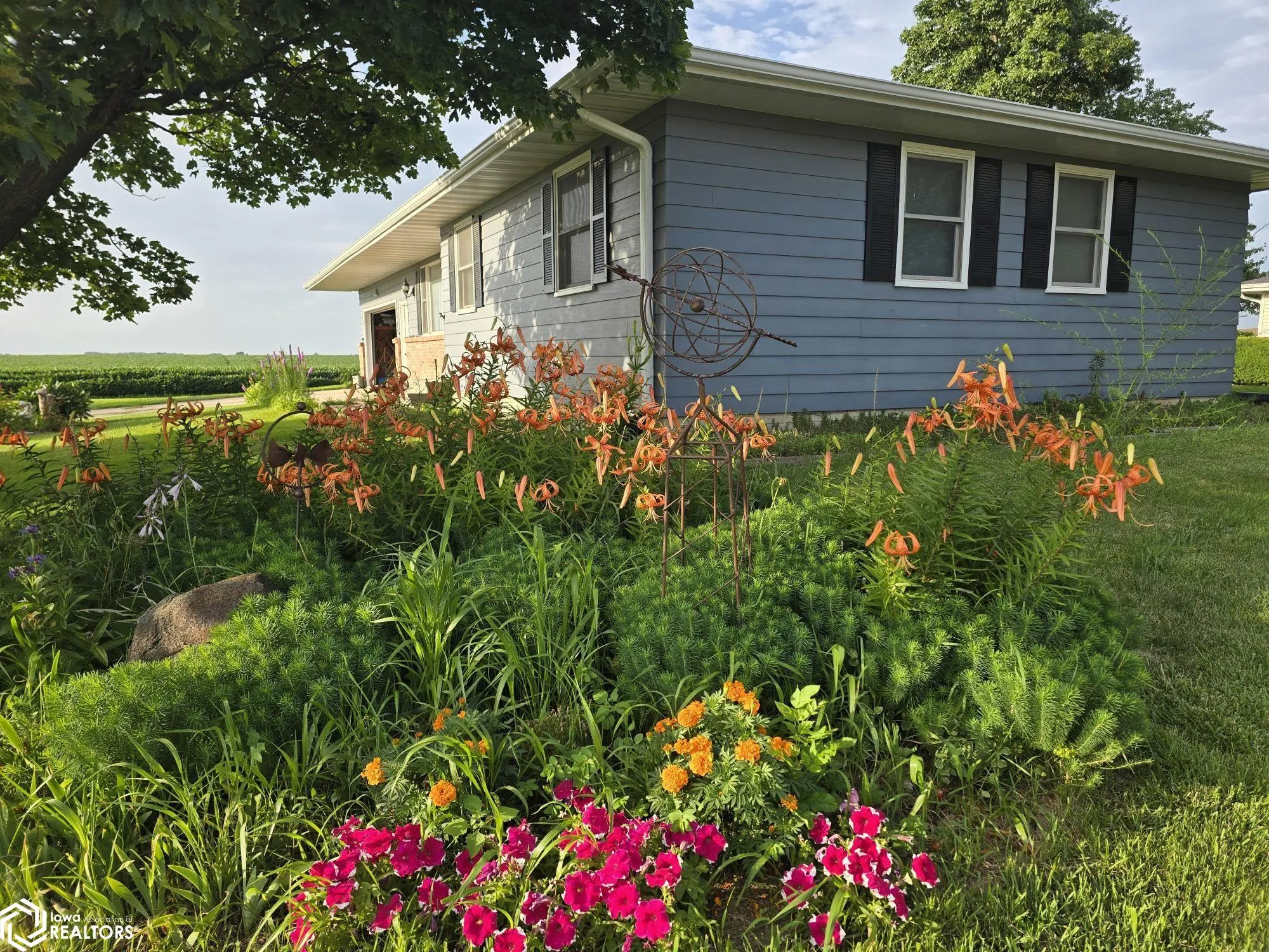 Easy living ranch with 3 bedrooms and 3 baths and 1 non-conforming bedroom in lower level could be the 4th. Living room with large picture window offers lots of natural lighting. Spacious kitchen with plenty of cupboards and counter space, including a pantry, a center island with seating and storage. Spacious area for dining. Family room is just off the kitchen. Main floor laundry by family room. Master suite with your own private 3/4 bath. main floor full bath. Partially finished lower level includes living area with bar area and 3/4 bath and non-conforming bedroom. There is also plenty of storage and a workshop area. Attached 2 car garage, beautiful flower gardens, fire-ring and covered patio. With a spactacular view of the country side.
