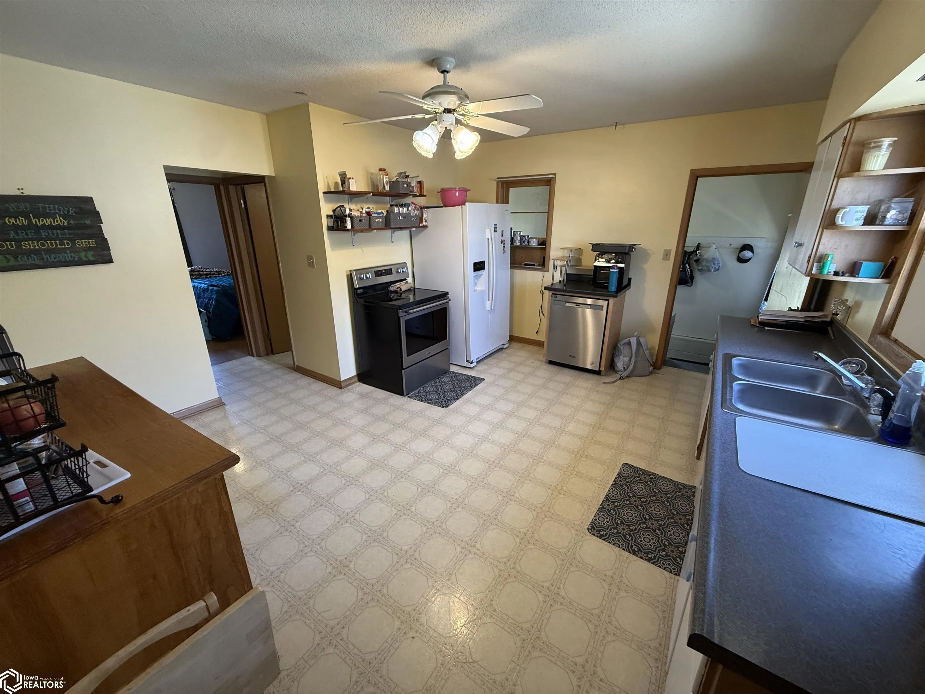 This beautiful 1 story home is ready for its next owners. Located close to Historic Downtown Harlan, this 3 bedroom, 2 bathroom home offers ample space and storage throughout all three levels. On the main level you’ll find a spacious eat-in kitchen, the primary bedroom, living room, a full bathroom, and a functional laundry room that could be a office space or potential 4th bedroom. The upper level offers ample storage and could be a fun kids hangout space or ANOTHER private bedroom if you choose. The basement has a sizeable living space as well as 2 conforming bedrooms, a full bathroom with a double sink vanity, and laundry can be moved back to the basement as well. The tankless water heater is a great perk… the radon mitigation system is already there… and the basement is waterproofed with a sump pump as well! Come check it out! You’ll find the primary bedroom on the main level, spacious eat-in kitchen, as well as a sizeable living room. The basement has two bedrooms, bathroom, and thrasher waterproofing… as well as laundry services!