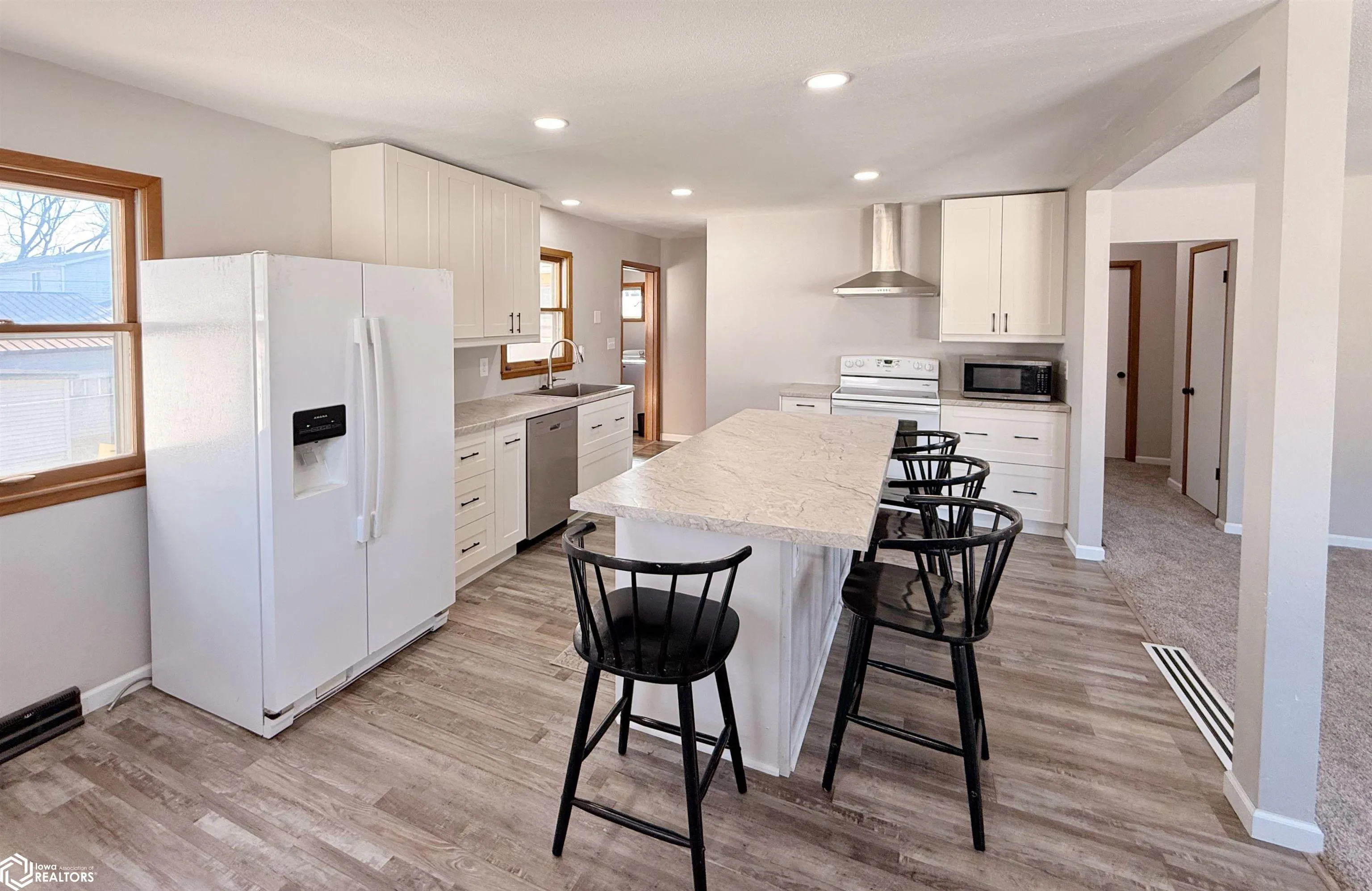 Solar-Powered Living | Updated Ranch in Guthrie Center Experience the benefit of extremely low utility costs with this well-maintained 1,279 sq ft ranch home. Featuring a recently installed solar panel system, the seller reports electric bills have not exceeded $14/month since installation—a rare and valuable advantage for today’s buyers. Home Features: • 2 bedrooms on the main floor • Bright, comfortable living space • Functional layout with easy flow • Full unfinished basement – ideal for storage or future finishing Extensive Updates & Improvements: 2024 Kitchen Remodel: • Opened layout with removal of 2 walls • New cabinets, countertops, and island • Can lighting installed • New sink, and oven hood • Fridge waterline installed Additional 2024 Updates: • New carpet in living room, hallway, and both bedrooms 2025 Updates: • Updated electrical outlets and light switches • New front door • New trim throughout upstairs • New ceiling fans in both bedrooms and living room • Updated bathroom vanity Energy Efficiency Advantage: • Solar panel system installed • Seller reports electric bills consistently under $14/month • Designed for long-term savings and efficiency Additional Highlights: • Clean, low-maintenance exterior • Move-in ready with major updates already completed • Opportunity to add value by finishing the basement A rare combination of updates, efficiency, and affordability—perfect for buyers looking to save monthly while enjoying a move in ready home