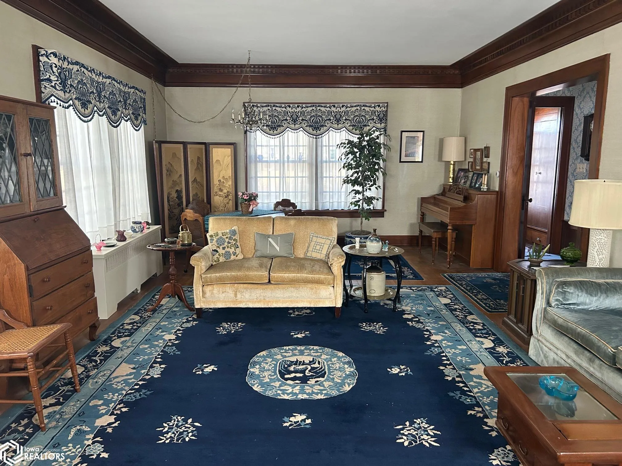 As you step through the vestibule of this nostalgic home you will be impressed by the craftsmanship seldom seen. Glistening black walnut woodwork handcrafted a century ago. Large formal living room highlighted by a brick fireplace with bookcases on each end. Entertain your guests in the sunroom with french doors opening to veranda. The formal dining features large built-in buffet, beamed ceilings and french doors. The kitchen has been modernized with lovely oak cabinetry and walk-in pantry. Charming breakfast area for informal dining. A unique original icebox is still there! The formal open stairs lead you to large landing on upper level where there are four bedrooms and full bath. Back stairway & many built-ins. There is a large walk-up floored attic ideal for further use. There have been many updates since 2018, see disclosure. Modern central air unit in the attic. Ample room for larger garage if desired.