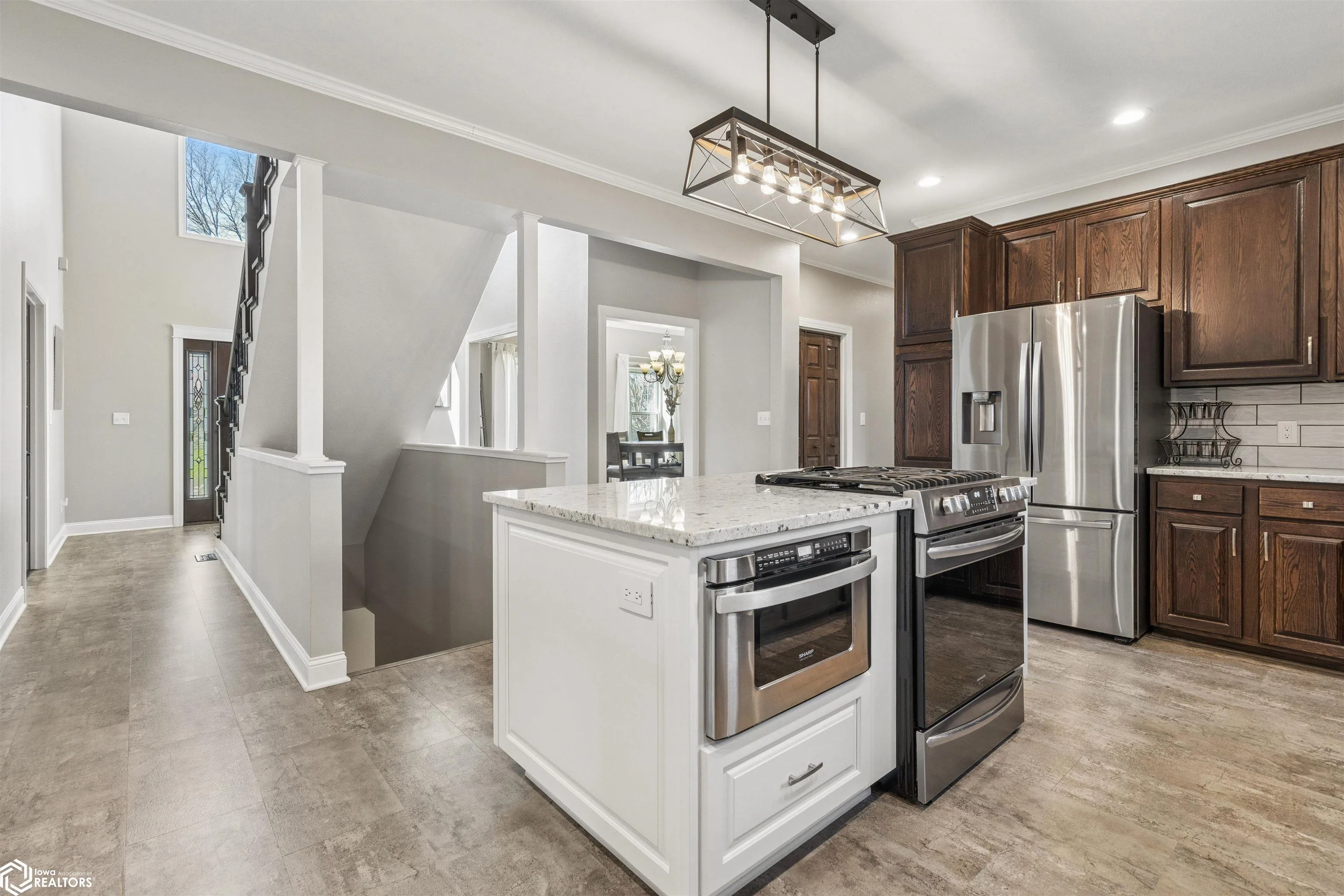 Impressive two-story home built in 1997 offering 3,646 square feet of thoughtfully designed living space. The upper level features four bedrooms, including a spacious primary suite with walk-in closet and a well-appointed primary bath complete with a soaking tub, step-in shower, heated towel bar, and linen closet. Two additional generously sized bedrooms and a full bath with double vanity, heat lamp, and convenient laundry chute provide functionality and comfort, along with a bonus bedroom over the garage offering flexible space for guests, hobbies, or a private retreat. The main level offers a beautiful flow ideal for everyday living and entertaining, featuring a dedicated office, half bath, and main-level laundry. The inviting living room showcases a cozy fireplace, creating a warm and welcoming atmosphere. At the heart of the home is a chef’s dream kitchen with granite countertops, stainless steel appliances, a peninsula perfect for gathering, plus a coffee bar and wine fridge. A formal dining room completes the space for hosting and special occasions-and the sunroom leading to the deck. The fully finished lower level expands your living space with a game room, family or media room, workout or craft room, 5th bedroom with egress, and a full bath—perfect for guests or multi-functional living. The attached three-car garage offers convenient access with a walk-up from the lower level. Additional highlights include two new furnaces and central air units installed in 2025.