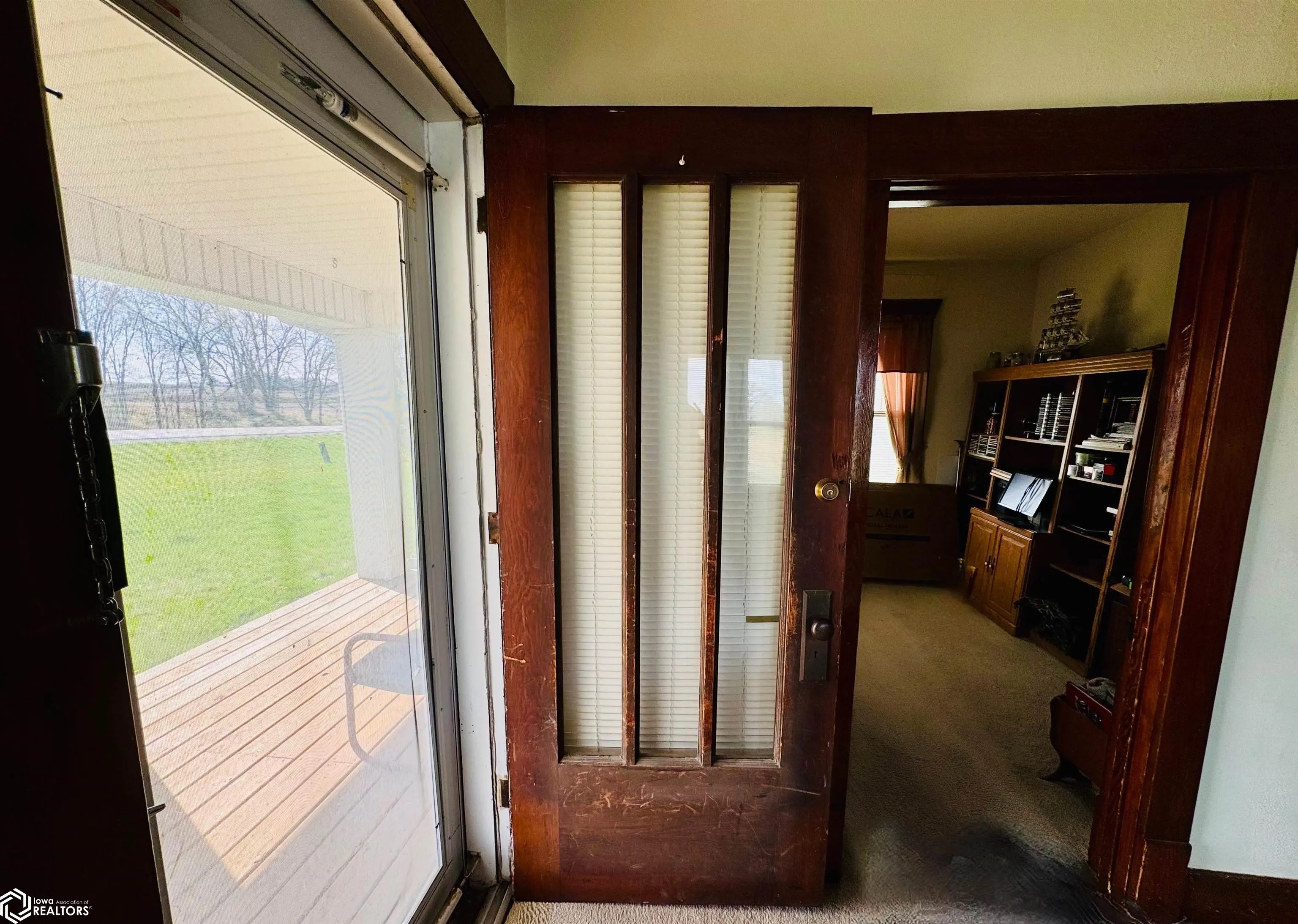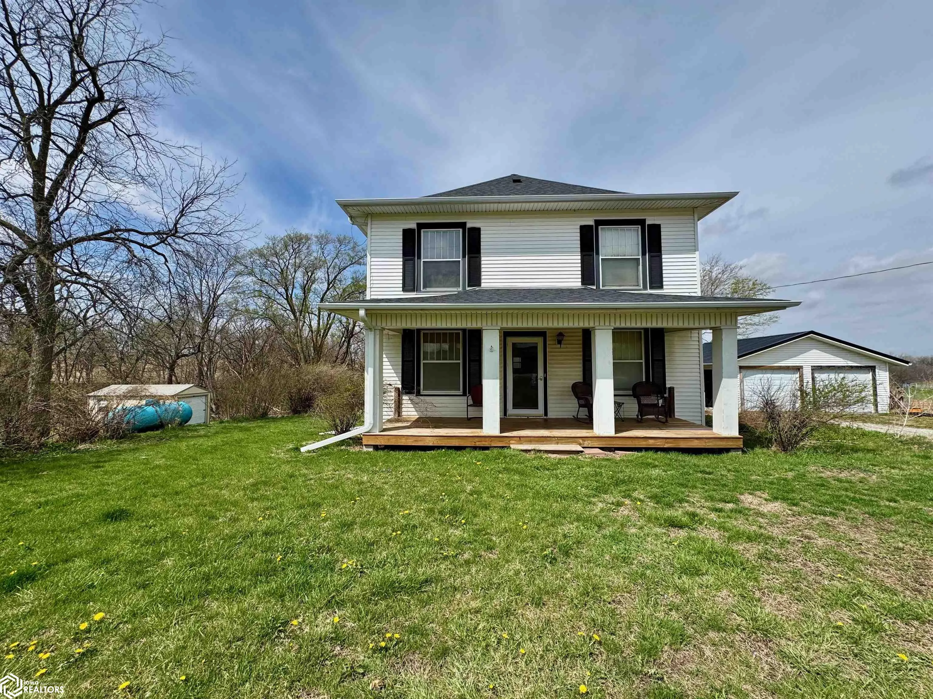 Classic two story family home on 2 acres, located just 3.6 miles south of Shenandoah on a hard surface road! This 4-5 bedroom, 1.5 bath acreage is a perfect choice for those seeking country living close to town! Well maintained with many updates throughout – rural water, entire home replumbed, kitchen updated, new garage roof, electric to shed and more! Main level offers a living room, den (5th bedroom or flex room), updated kitchen, main floor laundy and half bath. The heart of this home, is the beautiful dining room which features a gorgeous built-in hutch and expansive wooden windowseat nestled up to the south wall of windows. Storage drawers accompany the window seat, providing ample space for linens and hosting supplies. Continuing upstairs you will find four more bedrooms with paneled doors in the same rich colored woodword as the main level. Original hardwood flooring, a walk-up attic and the second bath with a walk in shower complete the second floor. A full basement allows for storage and storm shelter. Relax outside on the deck or lower patio, work on projects in the shed or at the workbench in the two car garage, or simply sit on the front porch and watch the day go by. Two acres of green space surround this wonderful acreage, while the neighboring wooded acres provide a scenic backdrop. Don’t miss your chance at owning this charming home full of character! With two acres less than five miles to town, don’t wait, call for a showing today! Selling “as-is.”