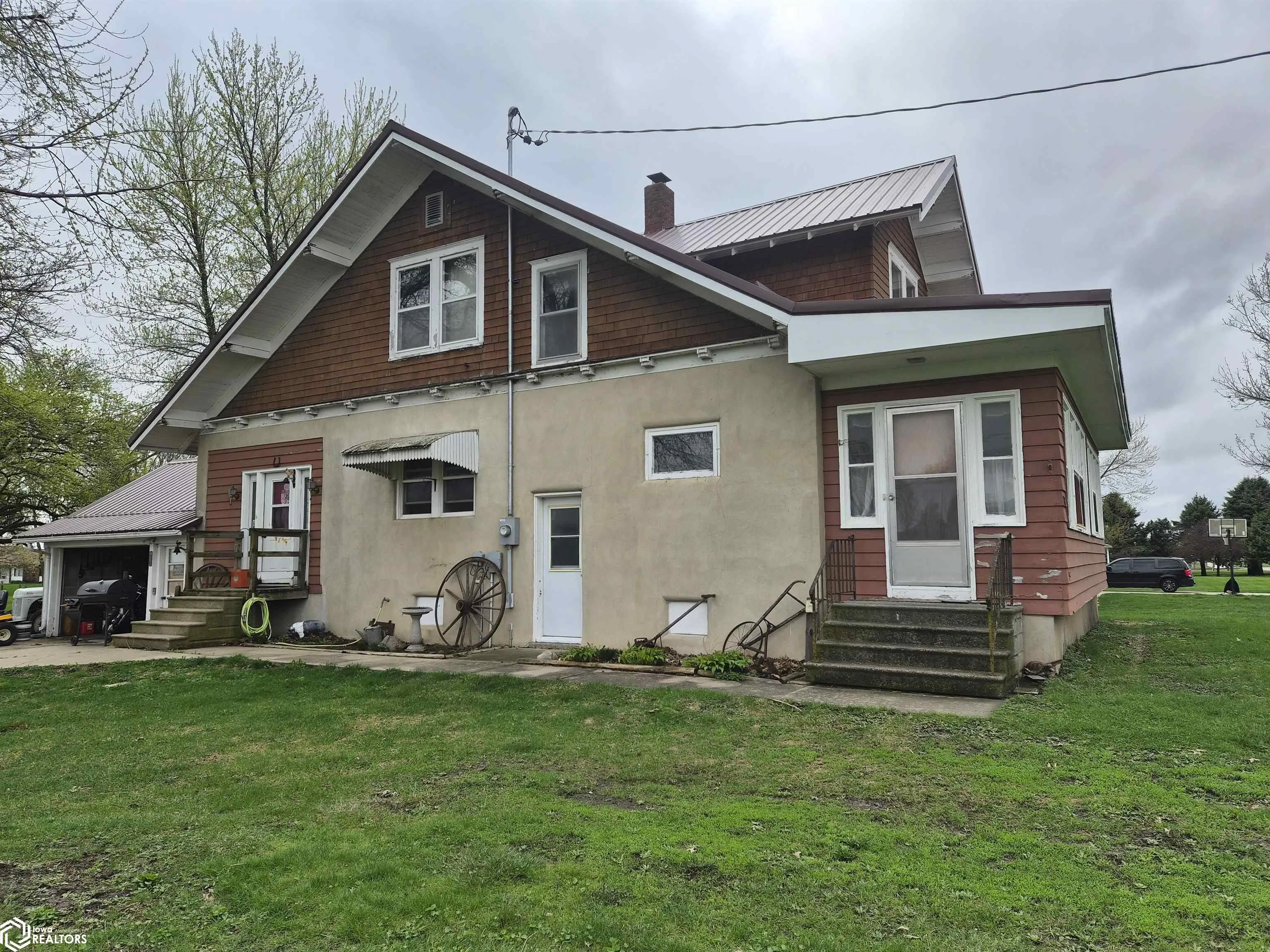 Great Starter home to make it your own. 2 Story home with so much potential.4 bedrooms 2 Plus baths. Enter the home through the enclosed porch. Hardwood floors through out. Very spacious living room with open staircase to the second floor. Nice sized formal dining room. Kitchen has so much potential. Laundry room and toilet just off the bedroom and access to the garage. Main floor bedroom with full bath. Second floor features 3 very nice sized bedrooms and a Huge bathroom with plenty of storage. Basement has a family room and possible office. Plenty of storage. Home has a newer metal roof, furnace, electrical panel and water manifold system. 2 window unit Ac stays with the home.