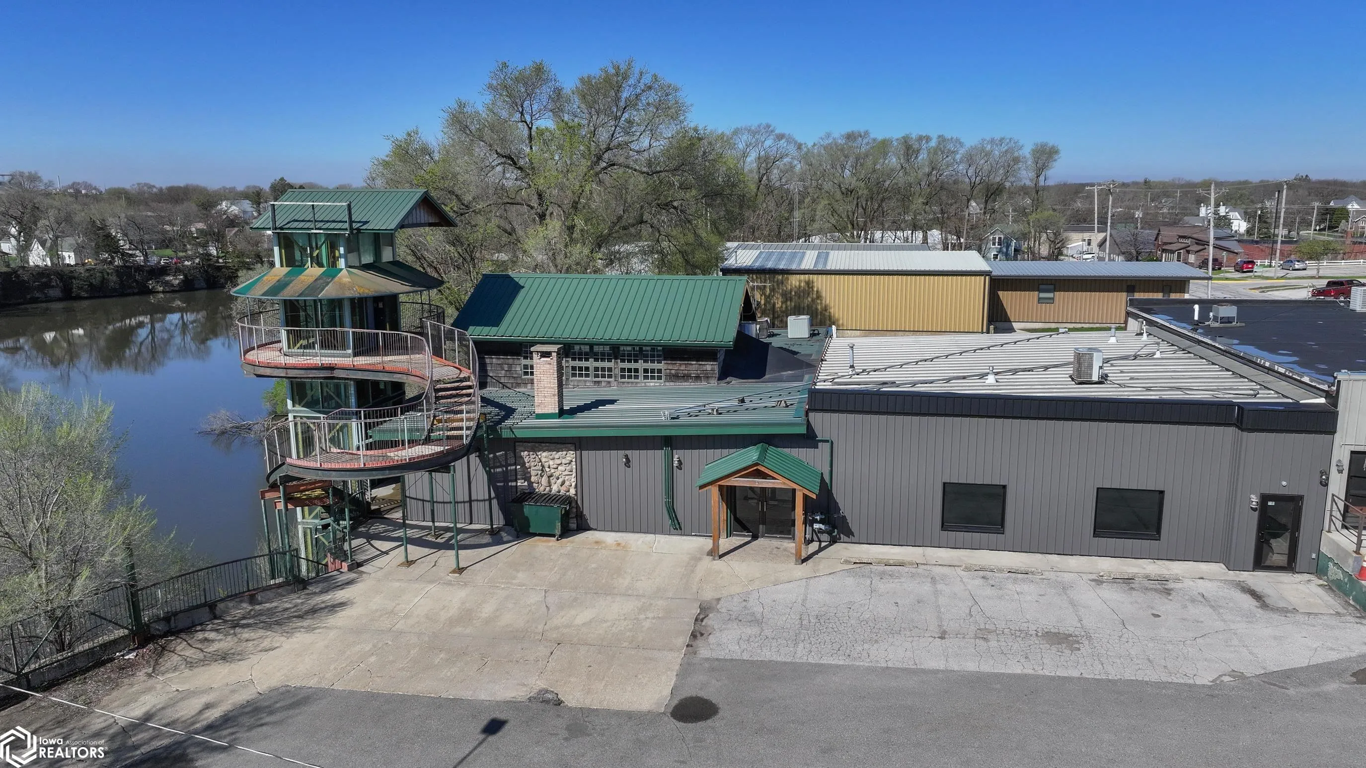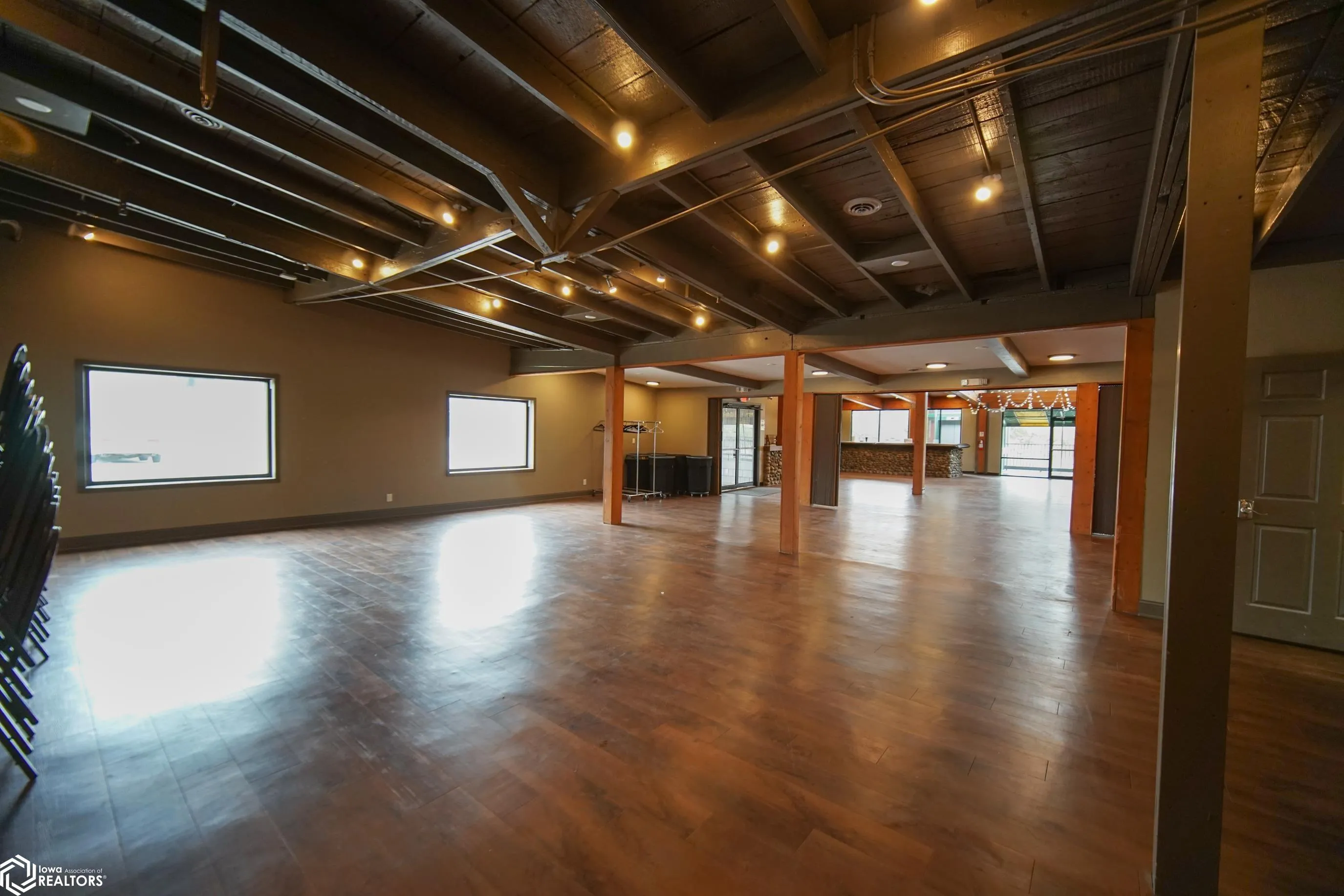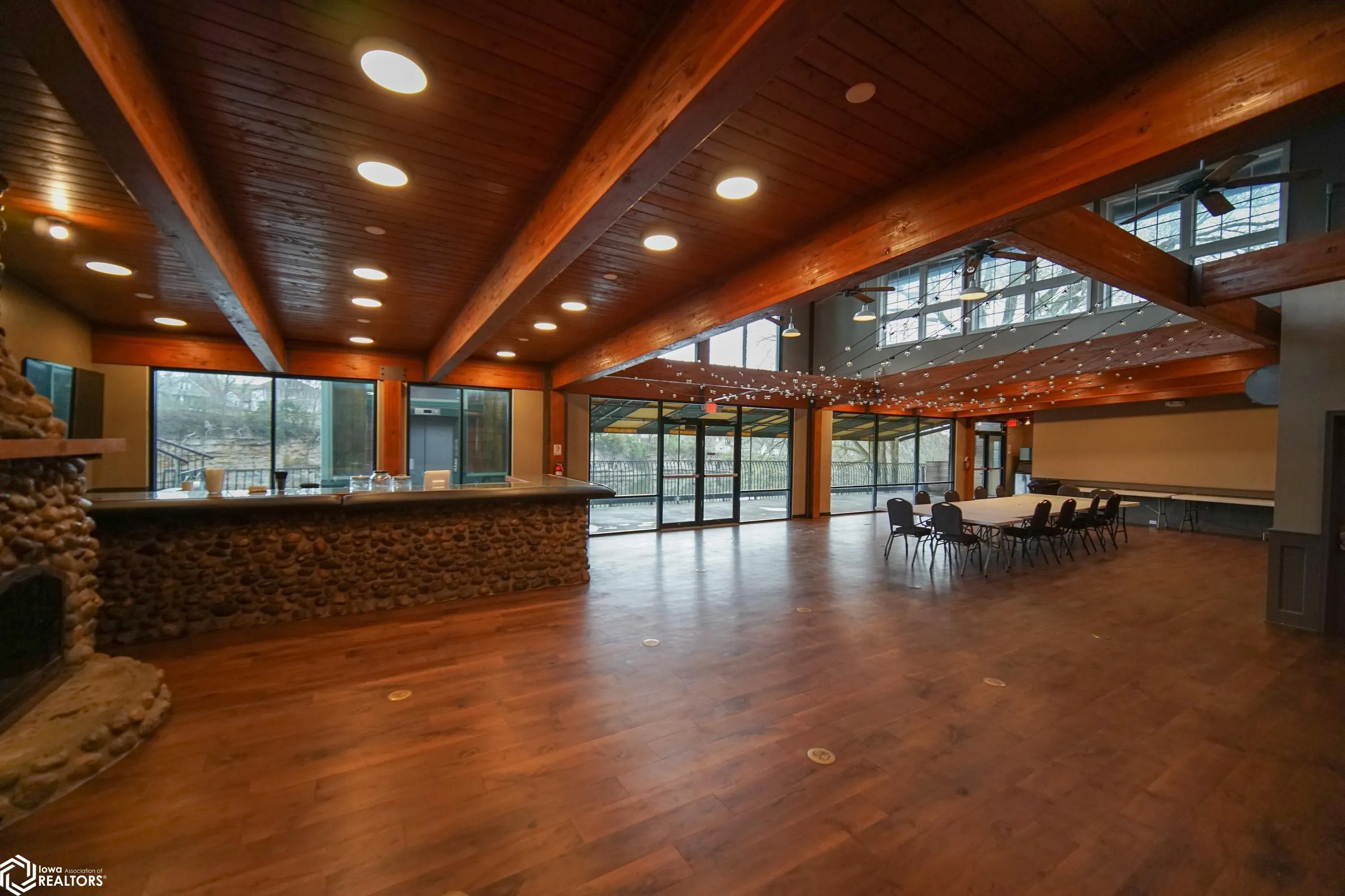 Turnkey riverfront wedding and event venue offering a rare opportunity to own an established and versatile commercial property in Iowa Falls. Known as Albrights Bluff, this property has successfully operated as an event venue for the past five years and is designed to accommodate approximately 250–325 guests. The main event space features expansive windows overlooking the scenic Iowa River, filling the venue with natural light and providing a stunning backdrop for weddings and events. A full-service bar positioned along the windows, along with an inviting atrium and fireplace, creates a warm and memorable atmosphere for guests. The lower level includes a spacious Airbnb/bridal suite, offering additional income potential and flexibility for overnight accommodations, wedding parties, or short-term rentals. This property is well-suited for a variety of uses including weddings, receptions, corporate events, graduations, and private celebrations. With an established presence and opportunity to expand bookings and increase revenue, this is an ideal investment for an owner-operator or investor seeking a unique income-producing property.