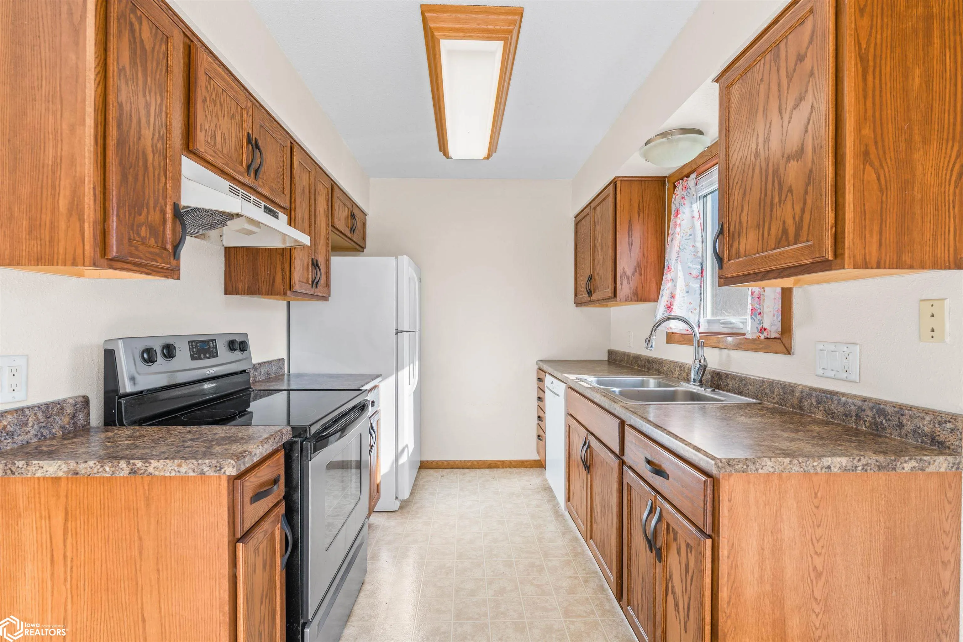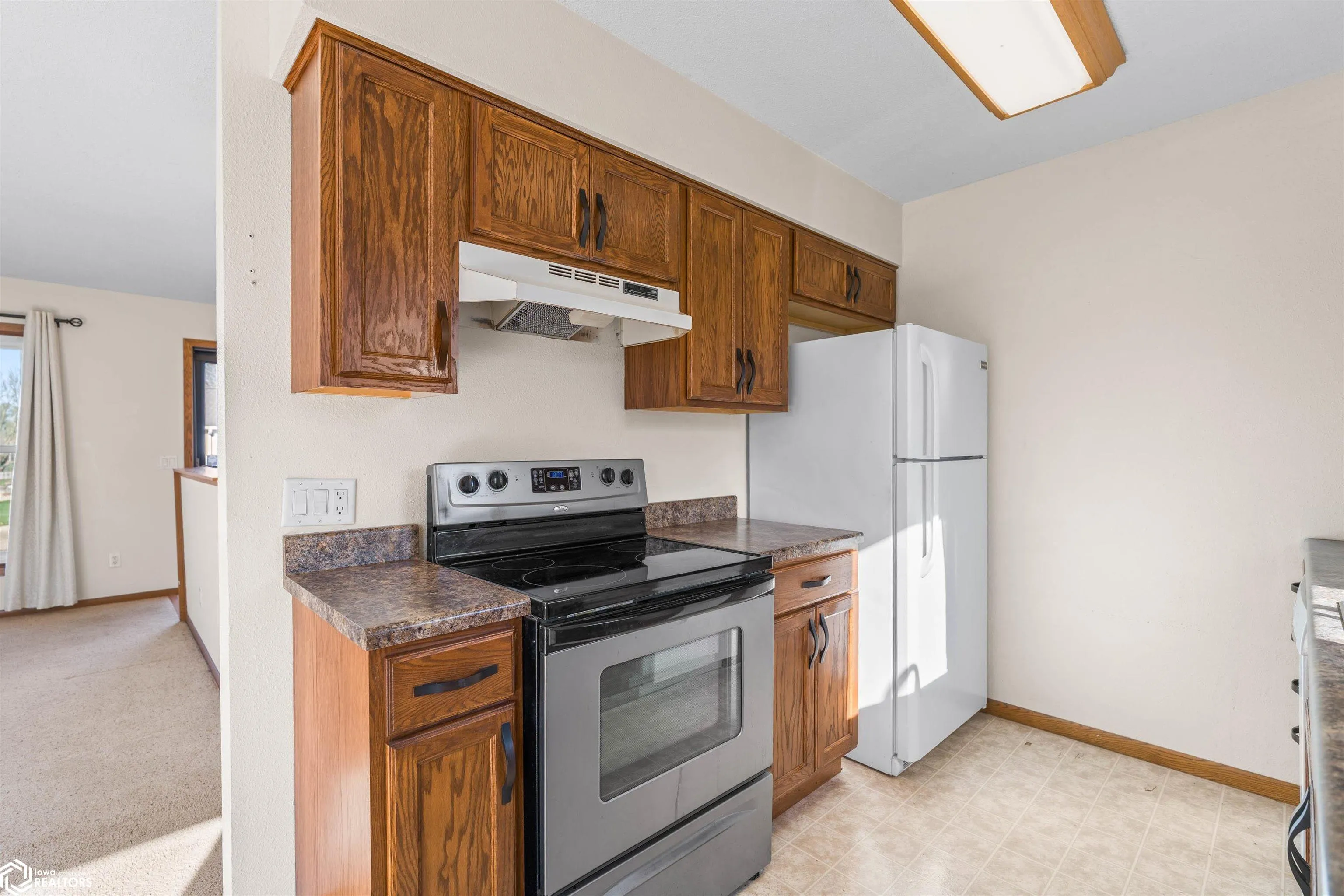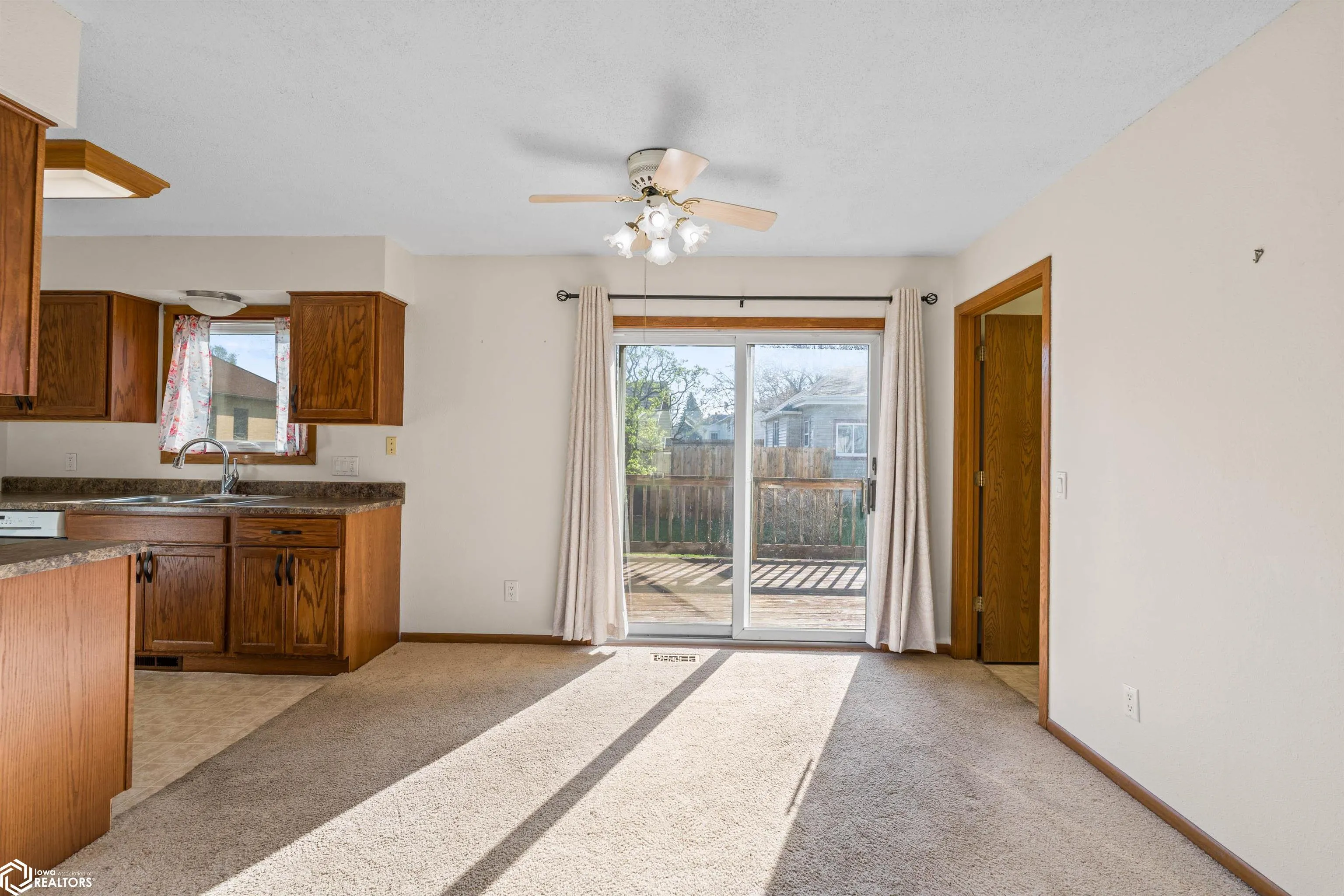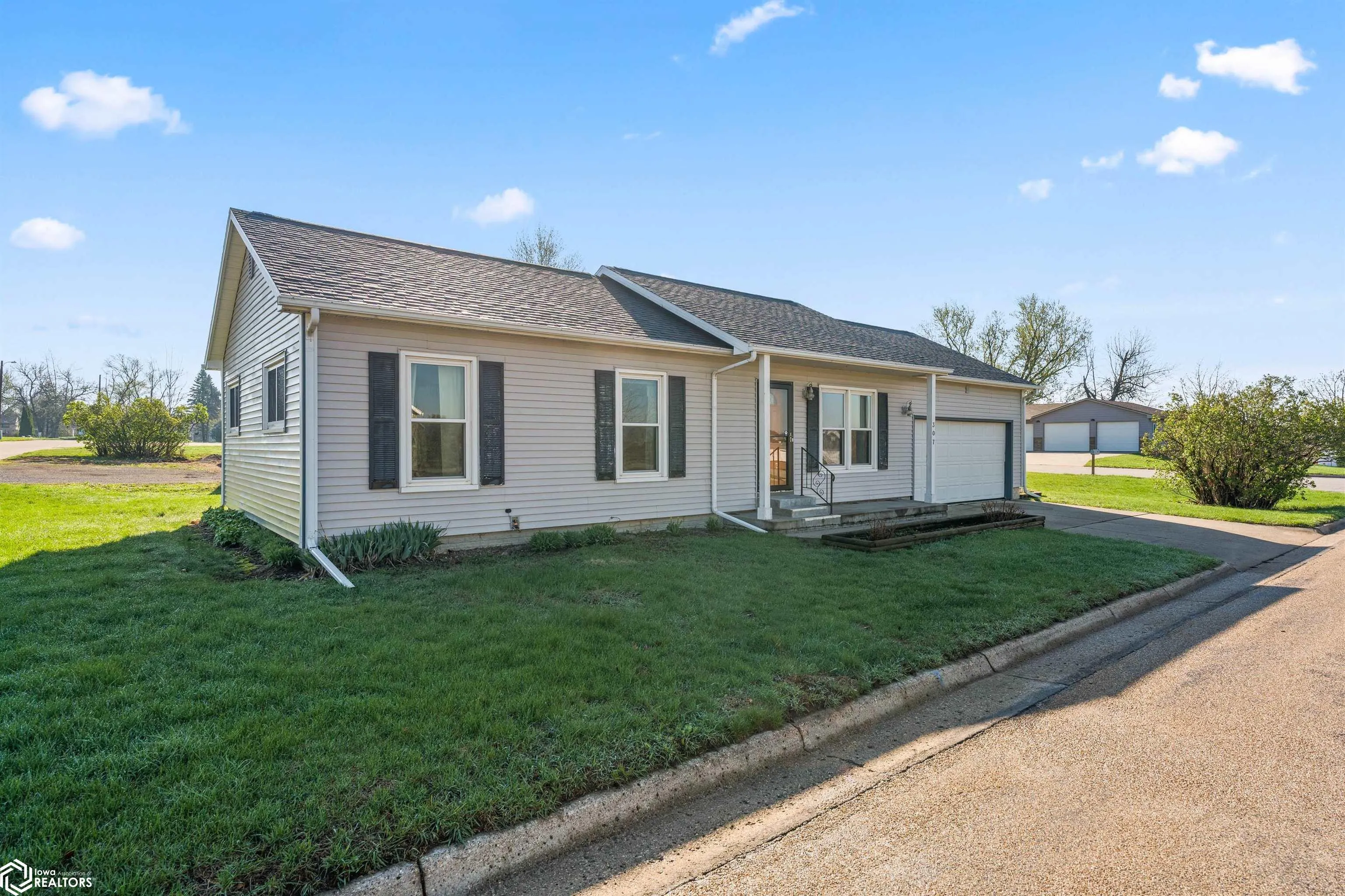 Welcome to 307 7th St SW in State Center — a charming and well-maintained home that offers comfort, functionality, and small town living with everyday convenience. This 3-bedroom, 2-bathroom home features a bright and inviting layout with over 700 square feet of thoughtfully designed living space, making it feel both cozy and efficient from the moment you arrive. The spacious living room flows seamlessly into the dining area and kitchen, offering a layout that works perfectly for both daily living and entertaining. The kitchen provides ample cabinet storage and workspace. Just off the dining area, sliding glass doors lead to a wooden back deck, creating a great extension of your living space. All three bedrooms are conveniently located on the main level, including a primary bedroom with its own private half bath. A centrally located ¾ bathroom serves the additional bedrooms, offering both comfort and convenience. You’ll also appreciate the flexibility of laundry hookups on both the main level and in the basement, giving you options to fit your lifestyle. The clean, unfinished basement provides excellent storage and opens the door for future possibilities. An attached two car garage adds everyday convenience. Situated on a corner lot with great curb appeal, this home offers added space and visibility, while its location provides quick and easy access to both Highway 30 and Lincoln Highway.