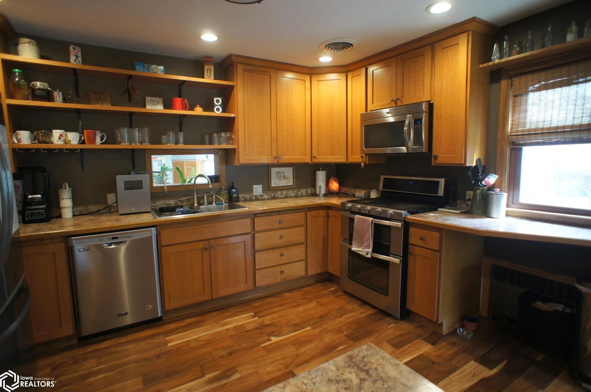 Completely updated 2½-story home on a rare double lot offering space, flexibility, and a backyard built to impress. Newly fenced yard features a 6’ privacy fence, established perennial and herb beds, vegetable gardens, berry patches and rainwater system with 1,500+ gallon capacity. Chicken coop and run included. Outdoor living shines with multi-level deck, pergola, and brick firepit patio, plus 18×20 shed. Exterior updated with new vinyl siding in 2020. Inside offers engineered wood flooring on lower levels and three separate living areas for versatility. Custom quarter-sawn oak kitchen with matching built-ins on each side of the living room fireplace. All kitchen appliances included (new refrigerator in 2025). Main floor sunroom with large south facing windows and 2nd fireplace. Upstairs features a spacious primary suite with skylights and ¾ bath, three additional bedrooms, and full bath. Finished attic for 4th bedroom with recording studio. Large finished basement rec room area and laundry room with sink and two sets of washer and dryers, extra refrigerator and freezer all negotiable. New boiler in 2024. Garage includes a separate 12 x 20 heated workshop. TV and surround sound in family room stay. Sauna, hot tub, workout equipment, ping pong table and yard art also all negotiable. Must see to appreciate the value!