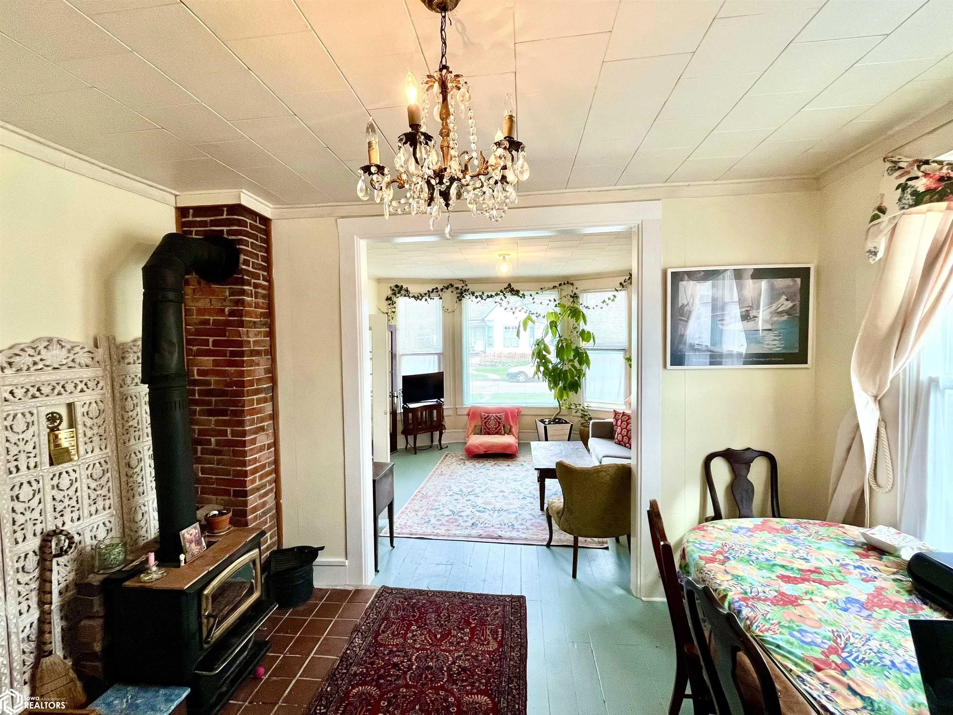 This beautifully restored home in the heart Fairfield blends soul with modern comforts–just a few blocks from the square! You’ll love the grand entry foyer w/ walnut staircase to access private upstairs guest/family/Airbnb suite (large full bathroom & kitchenette). Use space under the skylight as third bedroom. Main level –welcoming french doors lead into main living/dining room entertainment liv/din rooms have extra tall windows, 9′ ceilings & LIGHT. Wood burning stove in diningroom for cozy dinner parties. A lot of new and improved going on–new hot water & new furnace (2024), new windows on ground level! Chalk painted floors in living/dining–new finishes & fixtures everywhere you look! Tucked away in back is double main level primary bedroom–w/ xtra large windows & ensuite bath. Eat-in kitchen with picklewood shiplap paneled walls & ceiling is wonderful–now new luxury plank floors installed, too! New SS appliances & Bosch washing machine in 2022. Marble/granite countertops in this very unique kitchen. Roomy garage has been upgraded –door opener, work bench & picture window–ADU possibilities await! Freedom Foam Insulation (2024) to inside basement outer walls. Bright, sunny 3-season porch off master bath provides storage or indoor garden space or ? Backyard fun on quarter acre lot–new Juniper trees planted along border & repaired fence! Enjoy timeless elegance here with this updated gem, where classic charm abounds w a rare mix of “grand” architecture & cozy living!