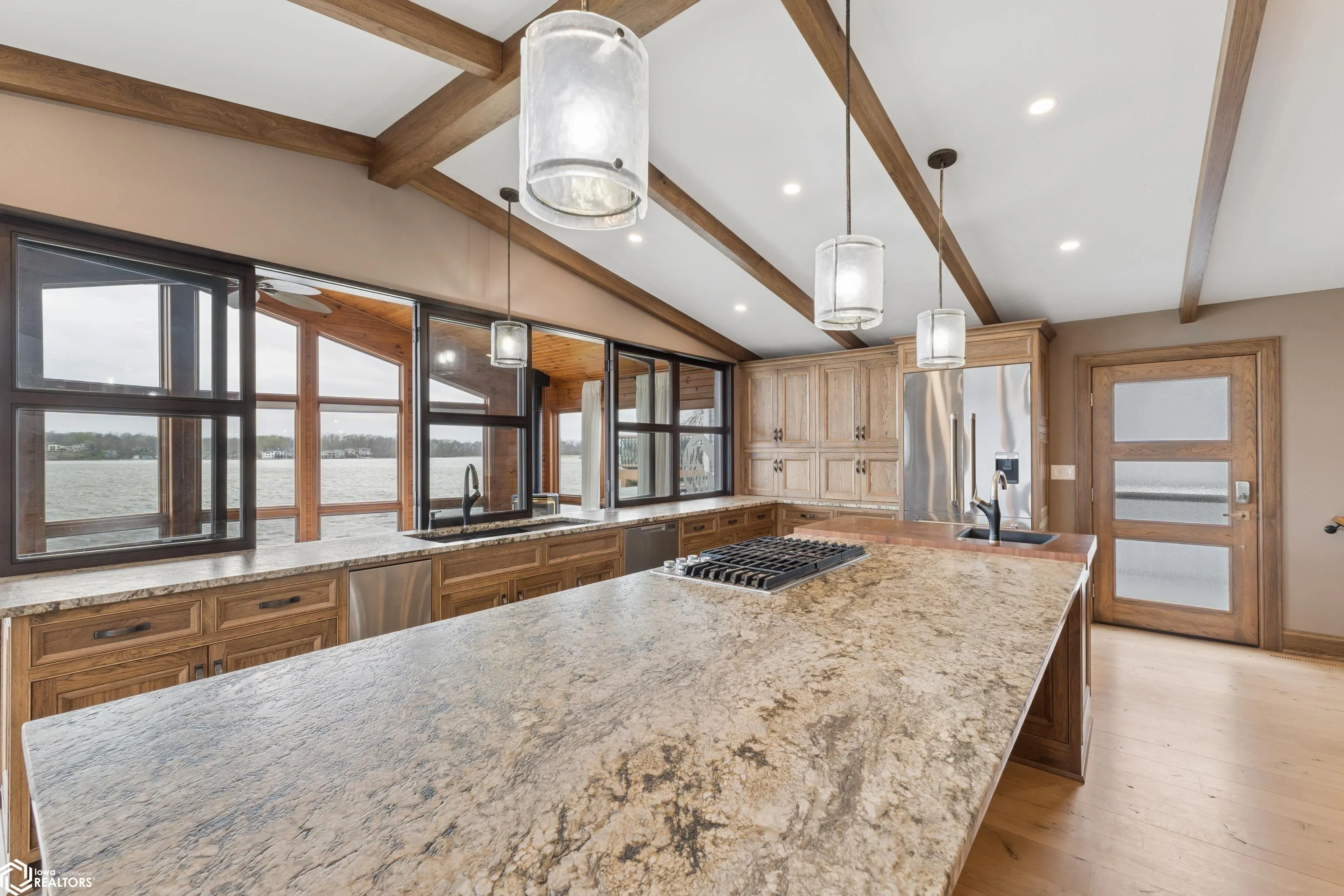 This is not just a home—it’s a showcase of craftsmanship along the shoreline of Clear Lake. Completely reimagined inside and out, this 3,000+ sq ft lakefront retreat blends refined design with everyday livability. Exterior updates include NEW Diamond Kote LP SmartSide siding, extended garage, seawall, roof, concrete driveway, composite decking, brick pathways, and updated landscaping—creating a clean, timeless presence. Inside, thoughtfully reconfigured spaces flow with intention, while custom hickory, walnut, and white oak woodwork and granite surfaces define the home—from trim and doors to cabinetry and flooring—each element carried consistently throughout. The kitchen anchors the space with a granite island and built-in butcher block, surrounded by custom cabinetry and open connection to the main living areas. The lakeside room offers vaulted ceilings and expansive water views through floor-to-ceiling windows. The primary suite features heated floors and a spa-inspired bath. The walk-out lower level includes a custom bar, fireplace, and direct lake access—just steps from the water. Set along Ventura’s shoreline, this is a rare opportunity to own a truly one-of-a-kind lakefront property.
