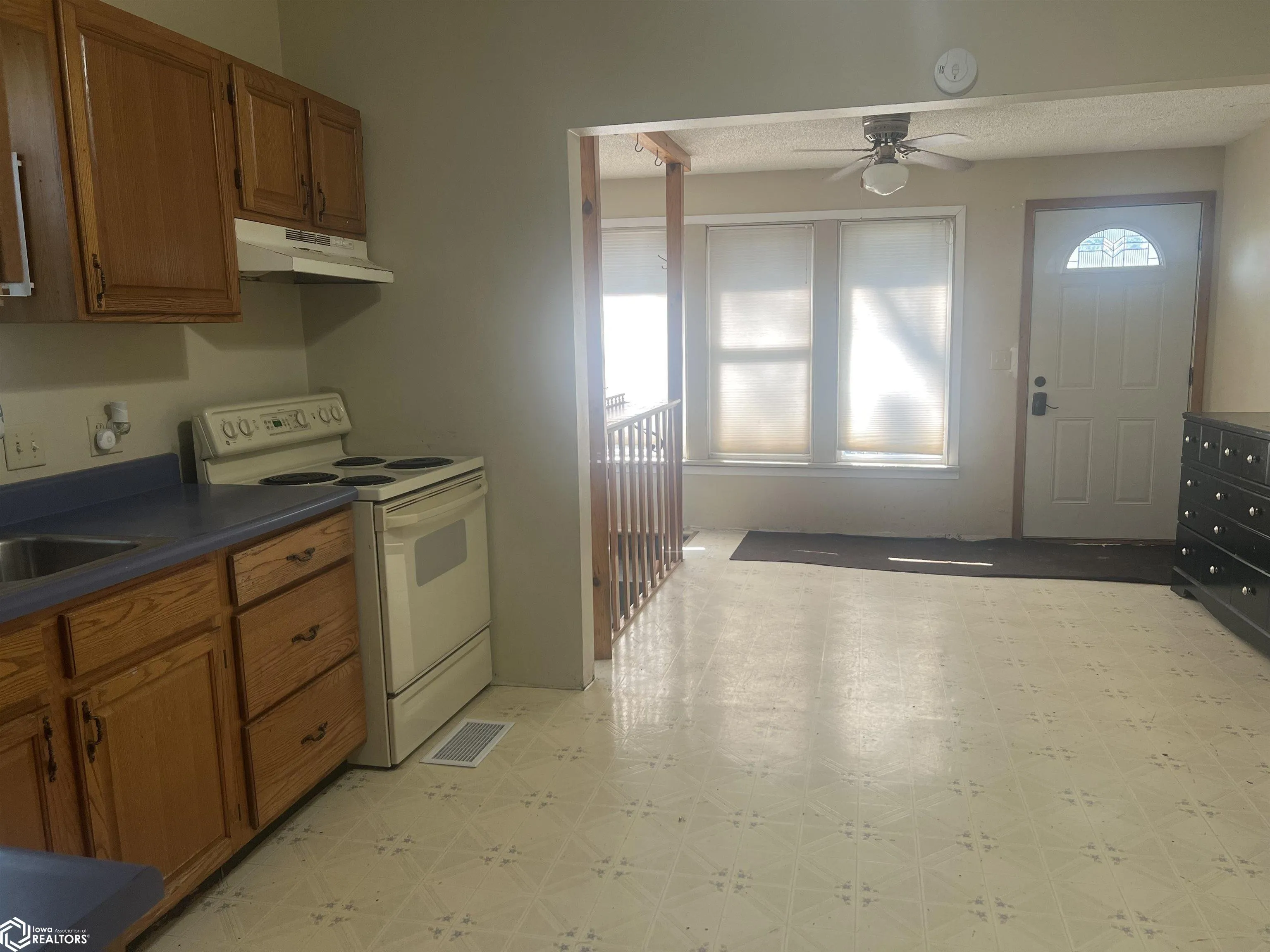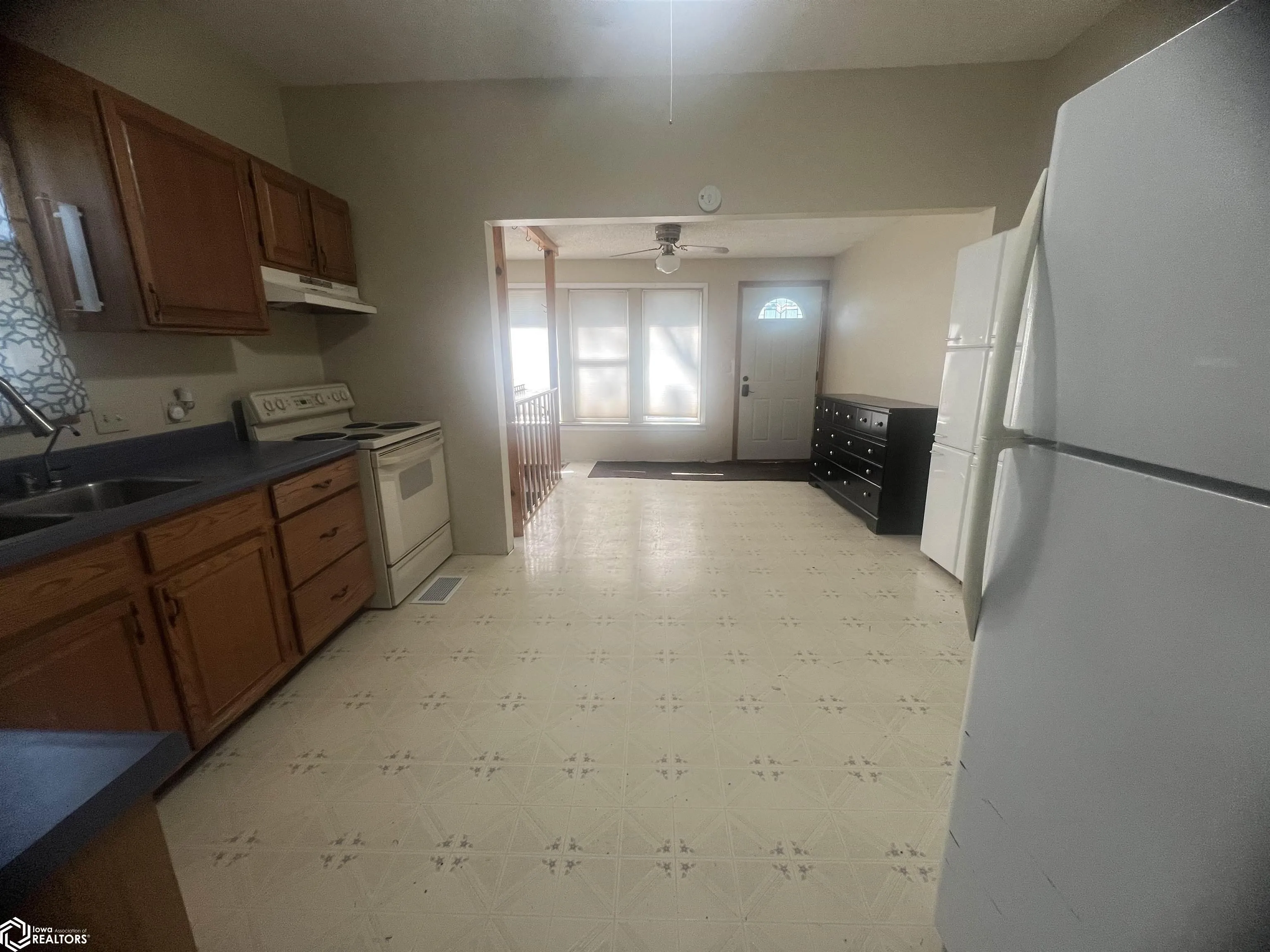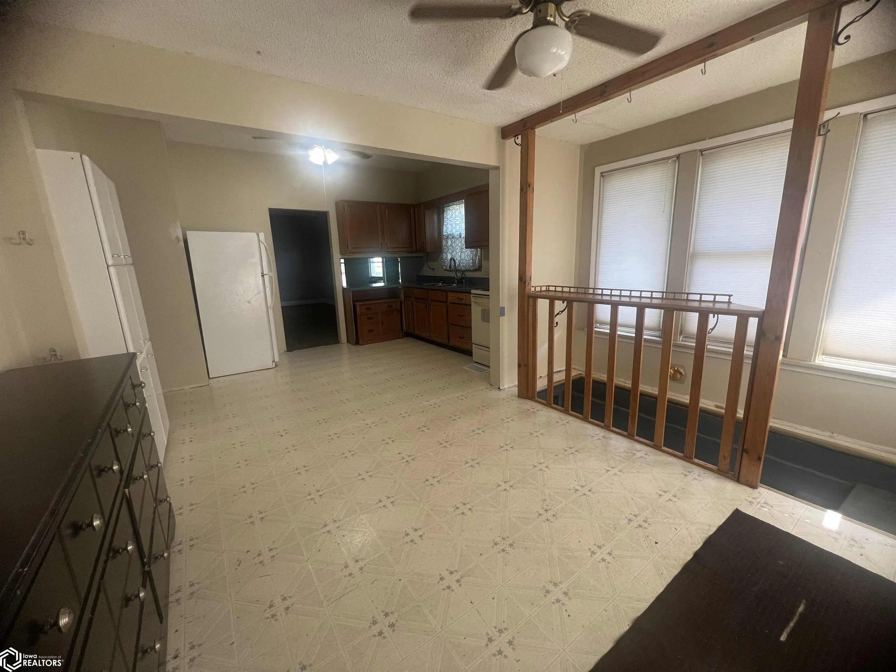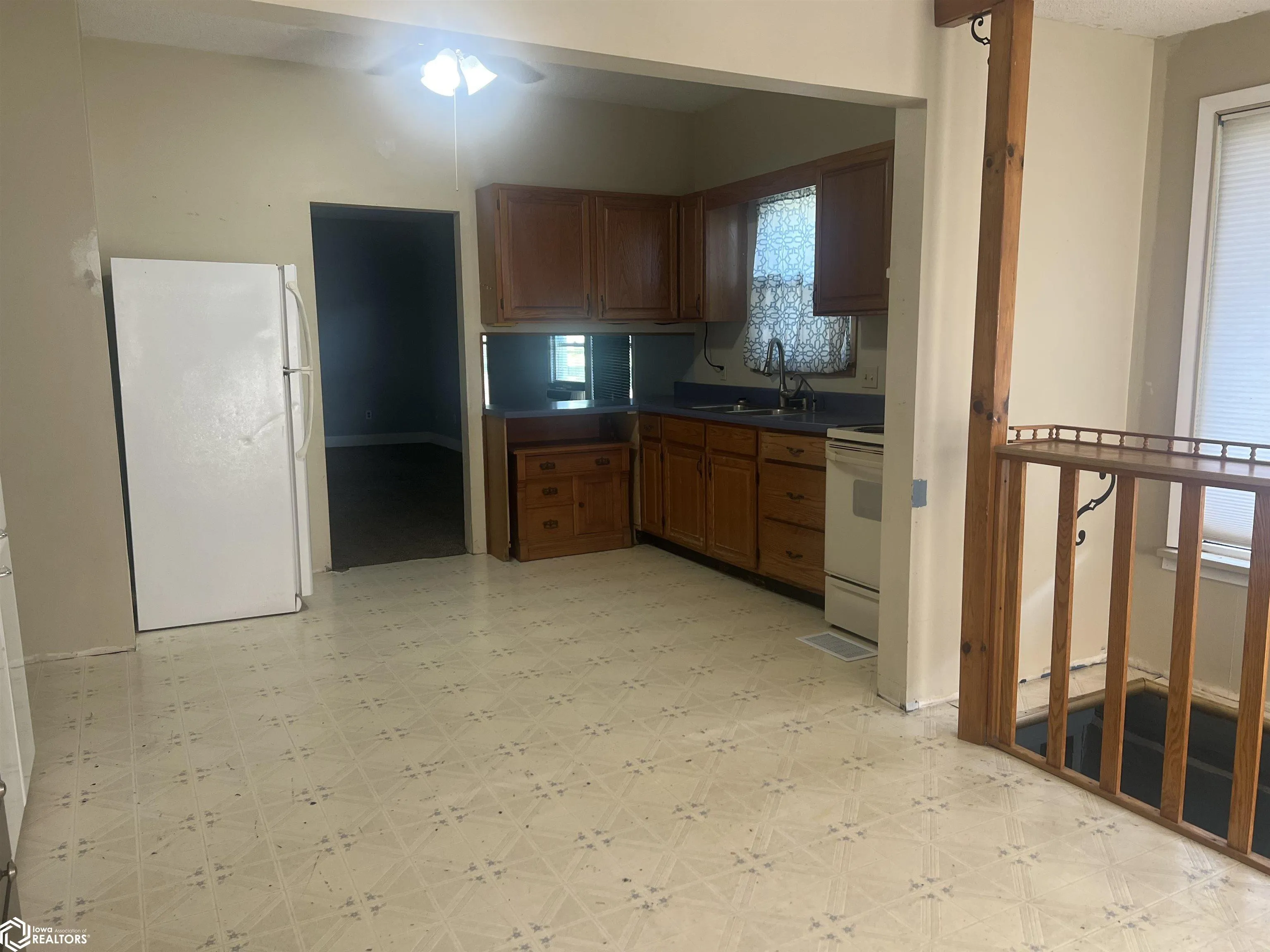 NEW BEGINNINGS can be found in this 2-bedroom home!!!! Quietness of a small town this home features spacious kitchen with oak cabinets, main floor laundry, large deck, enclosed front porch and a steel roof on house. Property is being sold – “AS IS”