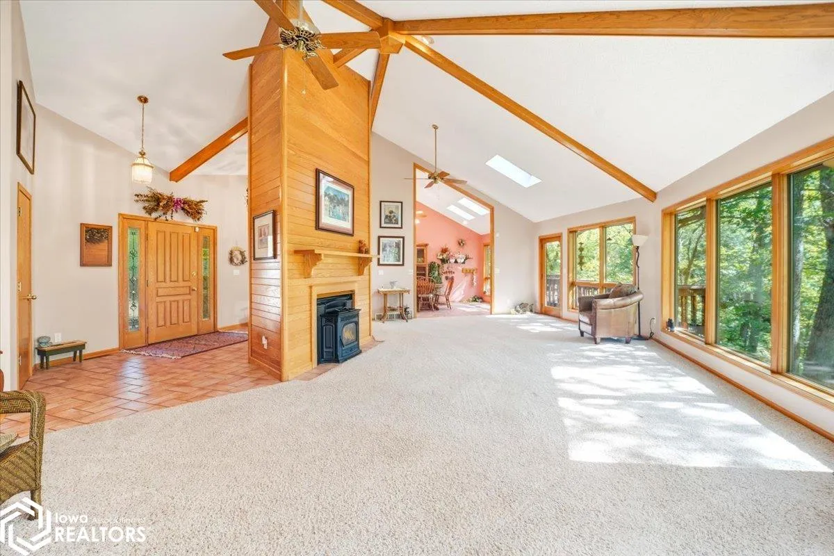 Welcome to this truly one-of-a-kind home, nestled on a serene private drive and surrounded by a sprawling 3.51-acre wooded lot. This residence offers an abundance of windows that invite natural light throughout and provide stunning views of the picturesque woods from every angle. Inside, you’ll find a well-appointed main floor featuring a large kitchen and a formal dining area—perfect for entertaining. The inviting living room centers around a breathtaking floor-to-ceiling fireplace, creating a warm and welcoming atmosphere. The main level also includes a spacious bedroom and an impressive master suite. The master bedroom offers private deck access, while the luxurious en-suite bathroom boasts heated floors and a spacious walk-in shower for ultimate comfort. This level also features a mudroom with laundry & half bathroom. The lower level expands your living space with a generous family area complete with patio doors that open to its own private deck. There’s an additional bedroom, a non-conforming bedroom, a full bathroom, a mudroom, and plenty of storage space with newer mechanicals. Enjoy outdoor living at its best with the expansive wrap-around deck—ideal for relaxing and taking in the beauty of nature. This exceptional property is the perfect retreat, offering peace, privacy, and modern amenities just minutes from town.