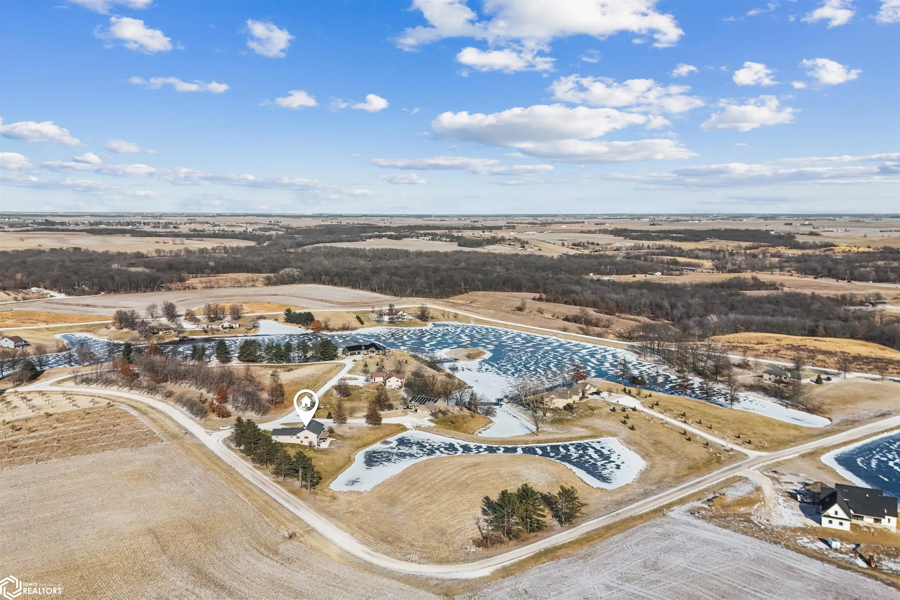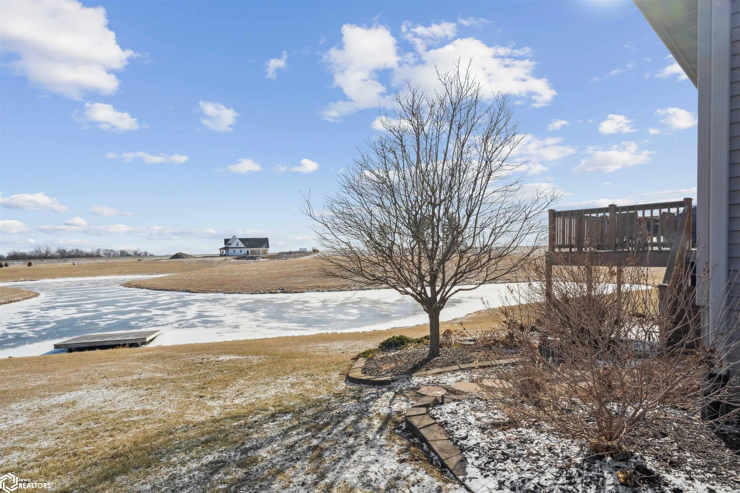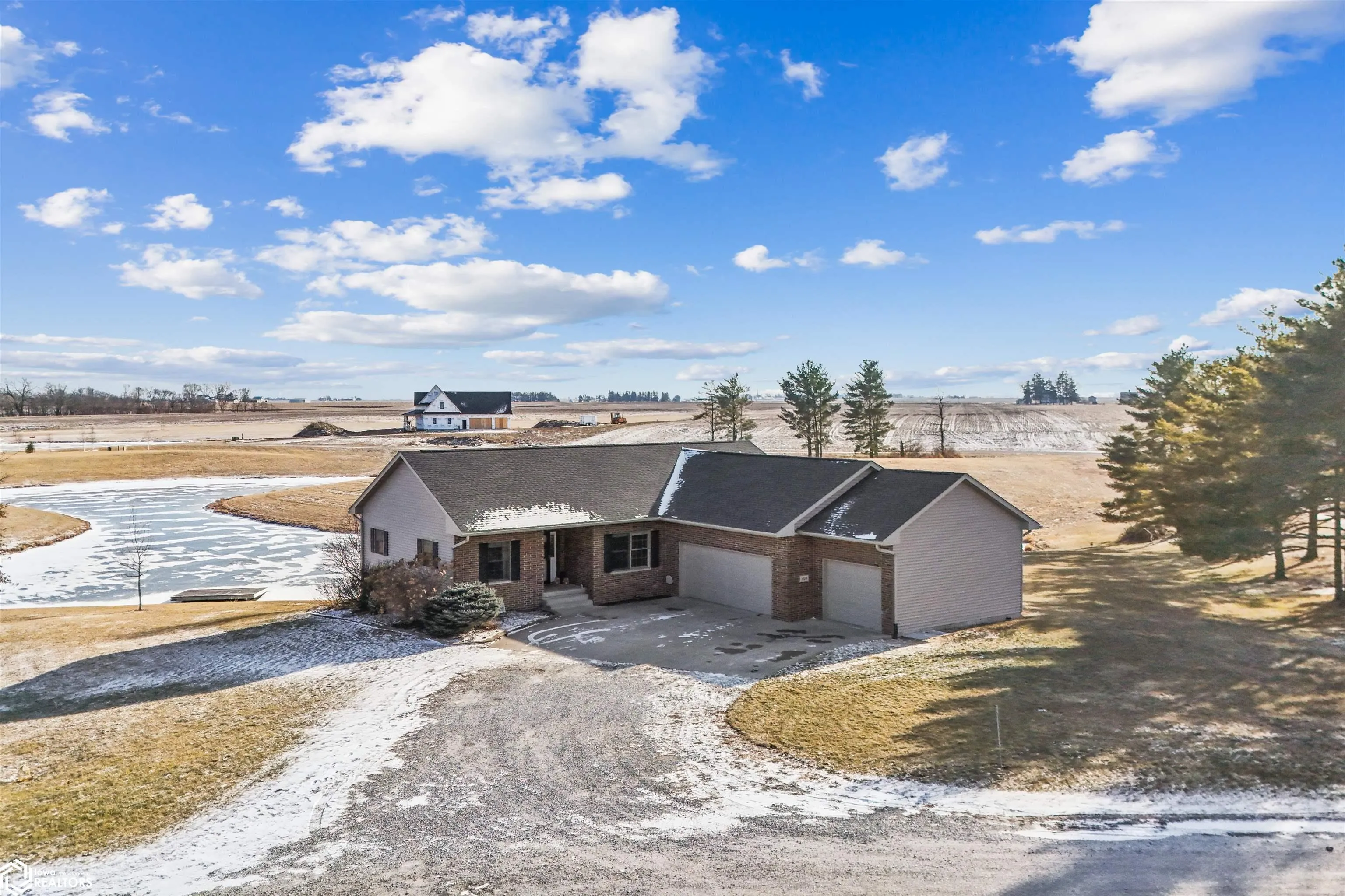 This 3 bedroom, 3-full-bath ranch home with a walkout basement is perfectly situated on 1.04 acres, offering peaceful water views and access to a scenic 2-mile loop walking path. This rural property provides easy access to Highway 218 and is just minutes from Mt. Pleasant, Washington, and Iowa City—ideal for those looking for quiet country living with convenient city access. The main floor features a primary suite with a heated floor en-suite bathroom, a walk-in tiled shower, and dual sinks. The open-concept kitchen includes a breakfast bar and dining area, flowing seamlessly into a living room with a wall of windows overlooking the pond and rolling farm fields. A composite deck off the living room offers the perfect place to relax and enjoy the scenery. Two additional bedrooms, a full bathroom, and a mudroom with laundry—conveniently located near the 3-car garage complete the main level. The finished walkout basement is perfect for entertaining, with a large family room, a built-in fireplace, and a wet bar. There’s also a versatile room with a walk-in closet that can function as an office, workout space, or flex room. Outside, the newly poured cement patio offers additional outdoor living space with breathtaking views of the pond and surrounding landscape.