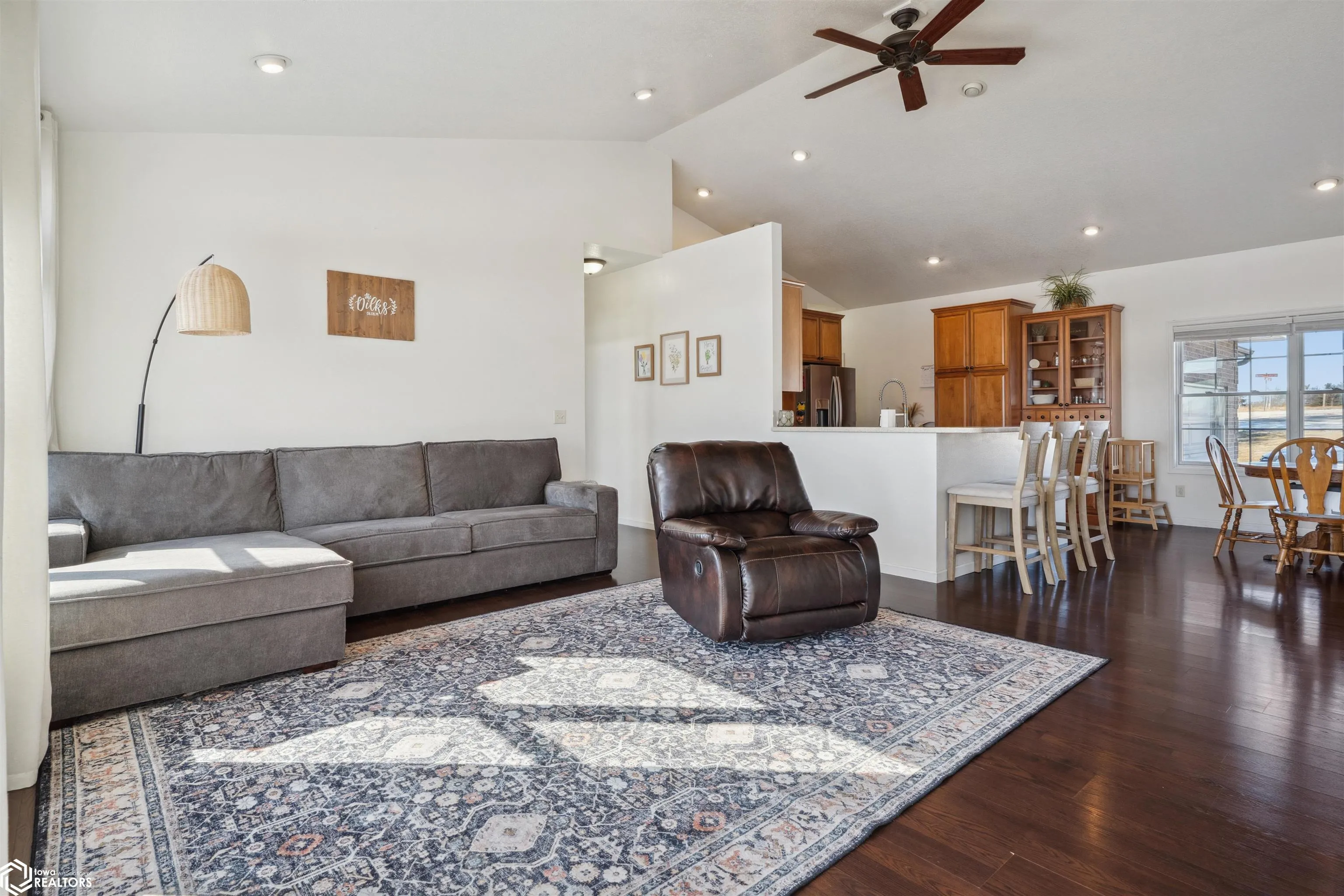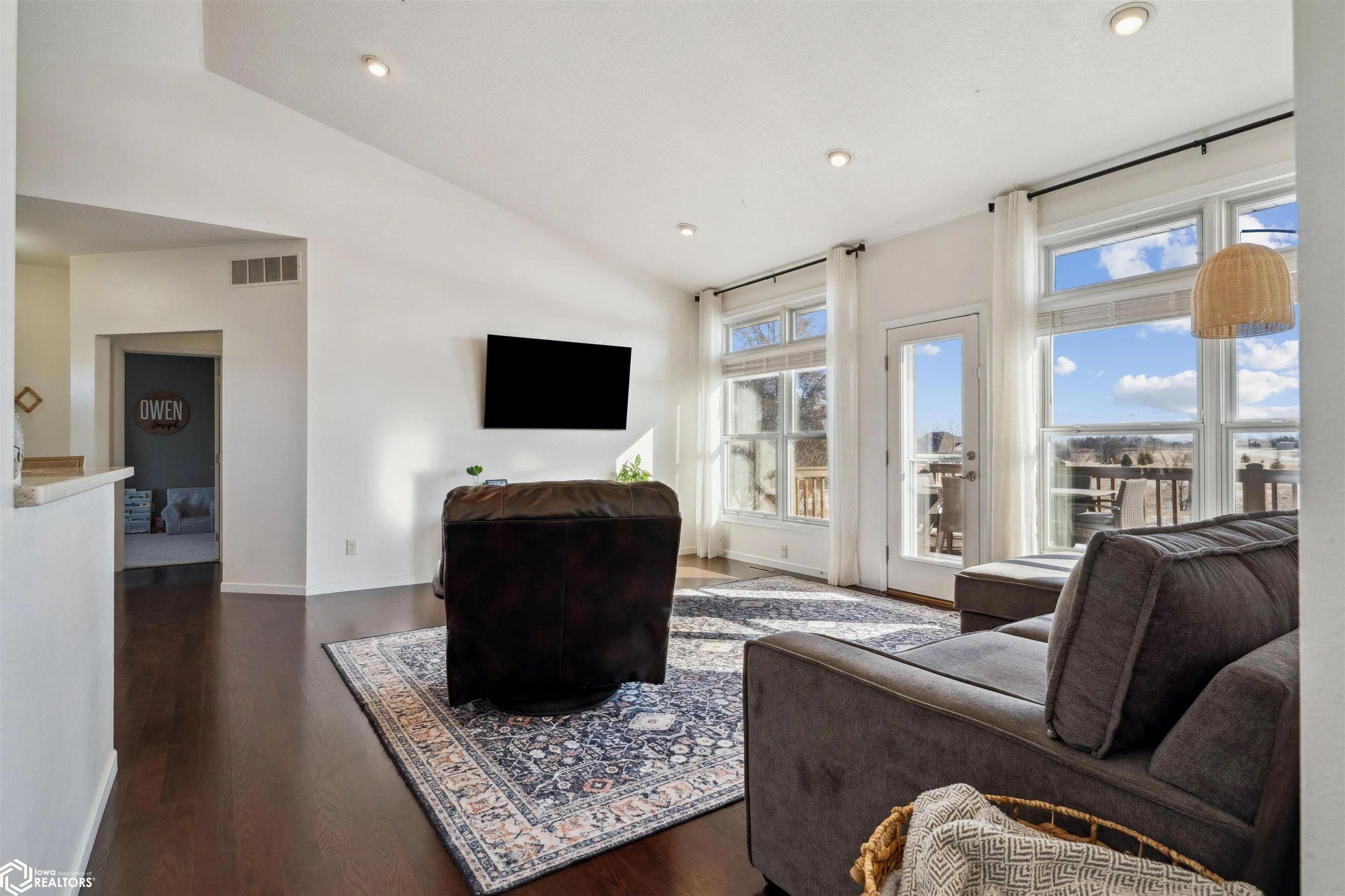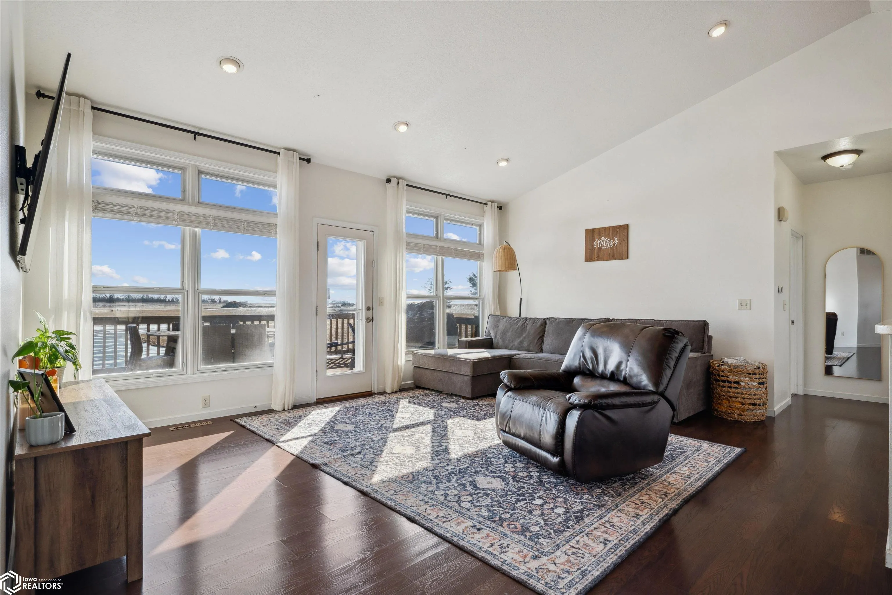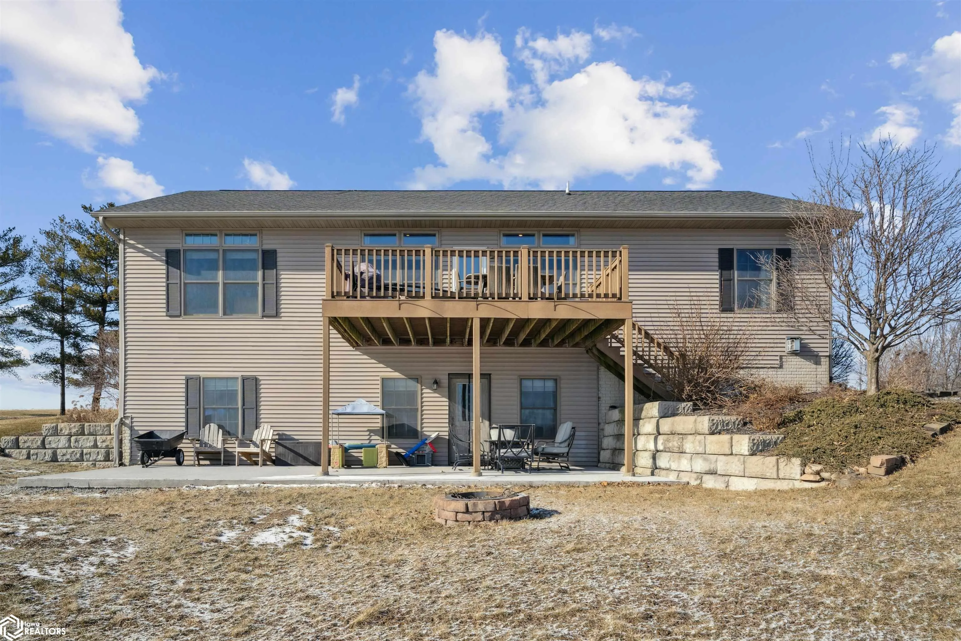 This 3 bedroom, 3-full-bath ranch home with a walkout basement is perfectly situated on 1.04 acres, offering peaceful water views and access to a scenic 2-mile loop walking path. This rural property provides easy access to Highway 218 and is just minutes from Mt. Pleasant, Washington, and Iowa City—ideal for those looking for quiet country living with convenient city access. The main floor features a primary suite with a heated floor en-suite bathroom, a walk-in tiled shower, and dual sinks. The open-concept kitchen includes a breakfast bar and dining area, flowing seamlessly into a living room with a wall of windows overlooking the pond and rolling farm fields. A composite deck off the living room offers the perfect place to relax and enjoy the scenery. Two additional bedrooms, a full bathroom, and a mudroom with laundry—conveniently located near the 3-car garage complete the main level. The finished walkout basement is perfect for entertaining, with a large family room, a built-in fireplace, and a wet bar. There’s also a versatile room with a walk-in closet that can function as an office, workout space, or flex room. Outside, the newly poured cement patio offers additional outdoor living space with breathtaking views of the pond and surrounding landscape.