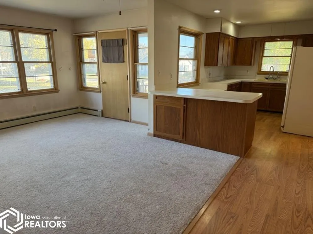Welcome to this beautifully updated ranch-style home, designed with comfort and convenience in mind! A custom ramp leads you directly to the front door, ensuring easy accessibility for everyone. Step inside to discover a cozy informal family room, complete with a warm fireplace and new carpeting—perfect for relaxing or entertaining. The kitchen features a functional U-shaped layout, highlighted by a convenient sit-up peninsula and a generous double-door pantry, making meal prep a breeze. Adjacent to the kitchen, the dining and living areas boast stylish vinyl plank flooring and thoughtful built-ins, adding a touch of charm and practicality. This home offers two spacious main-level bedrooms, along with a newly remodeled full bath that exudes modern elegance. The lower level presents exciting potential with space reserved for an additional bedroom or family room, alongside a newly remodeled 3/4 bath and a functional utility area. Step outside to the fenced-in backyard, providing a safe and enjoyable space for kids and pets to play. This delightful property combines comfort, accessibility, and wonderful outdoor space—perfect for creating lasting memories. Don’t miss your chance to make this house your home!