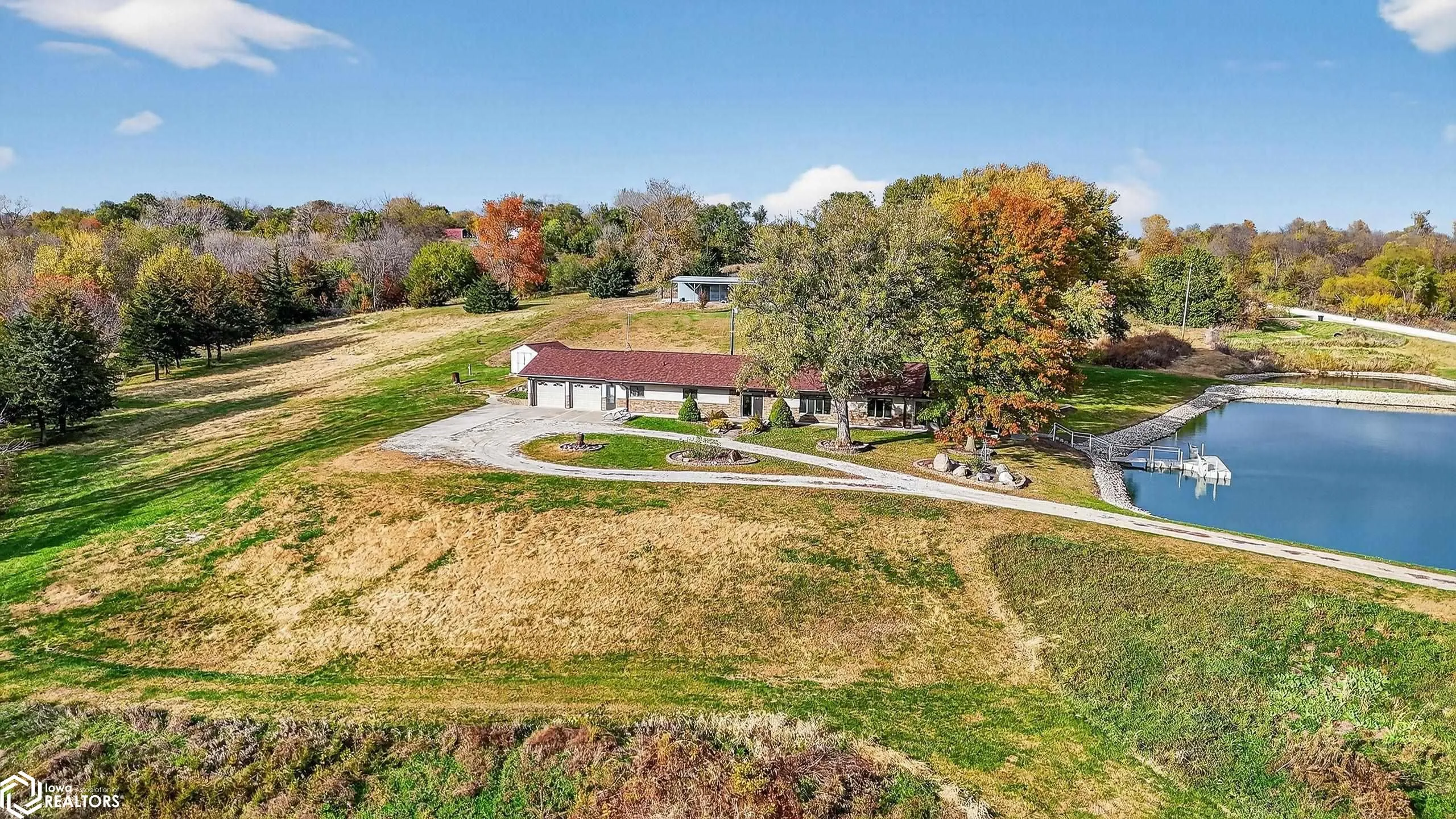 If you’ve ever dreamed of a place that feels like your own private park, this acreage delivers. Set on nearly 14 acres of rolling countryside, it features a stocked pond with dock, trails through the trees, and a 20×40 barn with 16 ft lean to, power, and water. Inside, you?ll find three large bedrooms including a primary suite with dual closets, two baths, and a spacious kitchen with stainless appliances, breakfast bar, and reclaimed wood wet bar. The double sided gas fireplace connects the living and dining rooms, creating a cozy gathering space. Updates include a new roof and geothermal system in 2023, new siding with stone accents, and new LVP flooring. The oversized garage includes workshop space and RV hookup access. A sunroom overlooks the pond for the perfect peaceful escape.